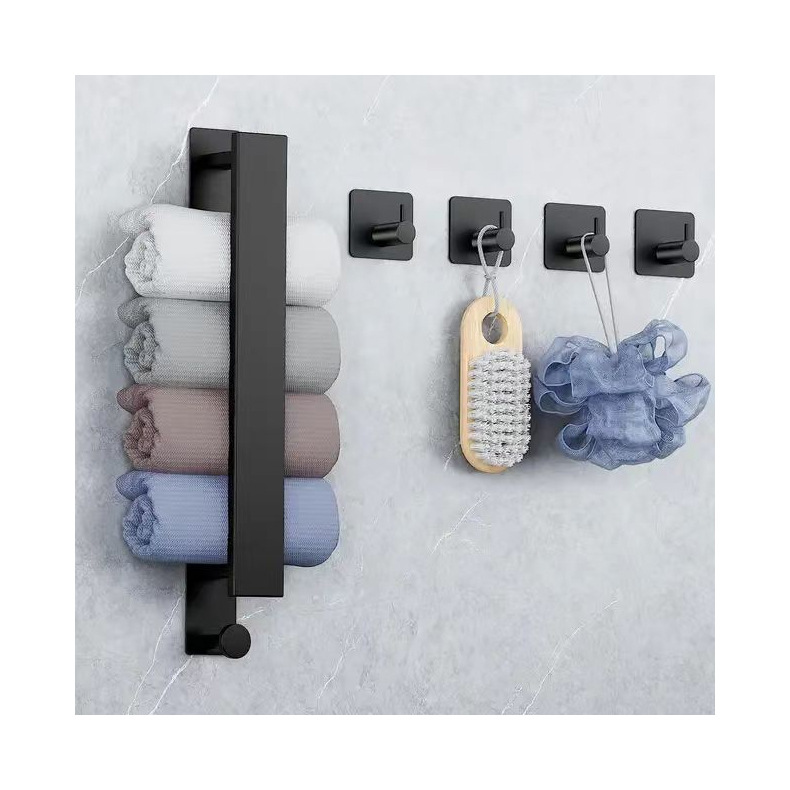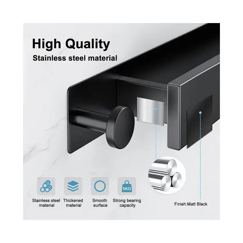 국경 스테인레스 스틸 타월 바 자체 접착 비 욕실 보관 수건 바 구멍이 뚫린 수건 랙 수건 바 욕실