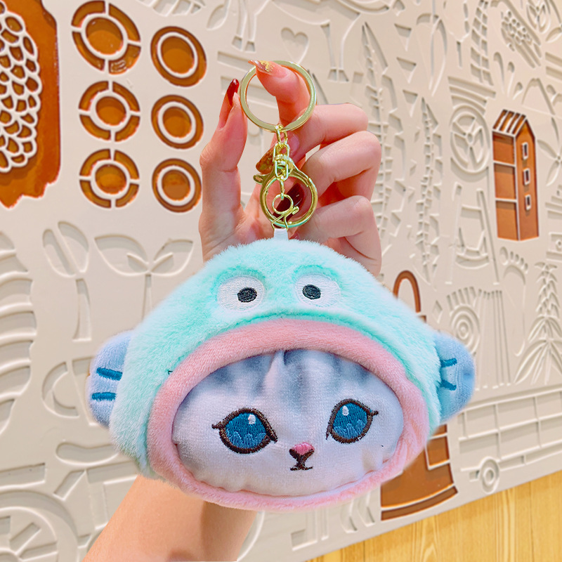 • 봉제 고양이 헤드 기어 동전 지갑-물고기 괴물
