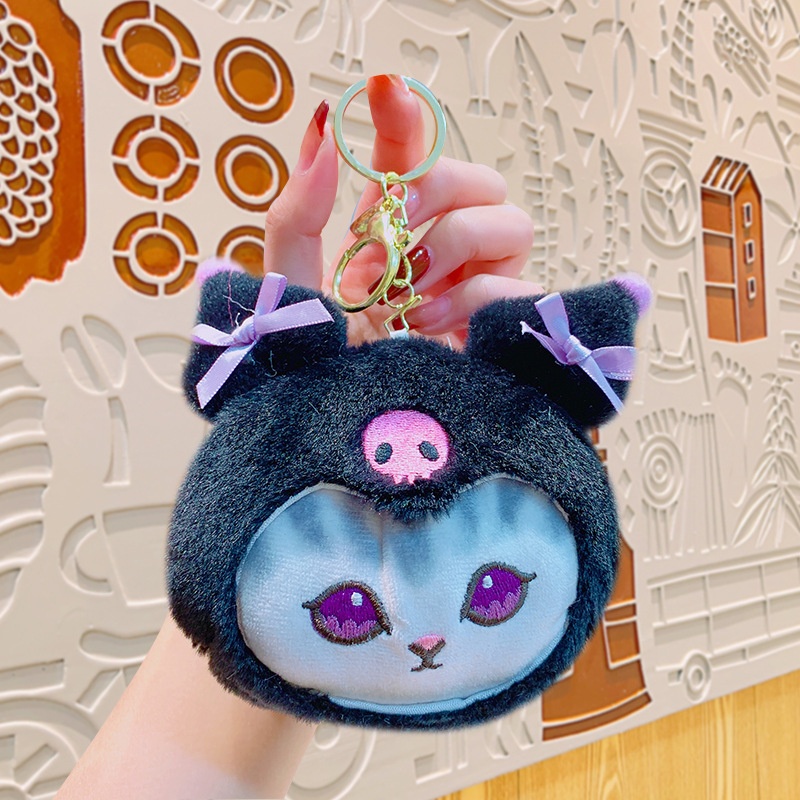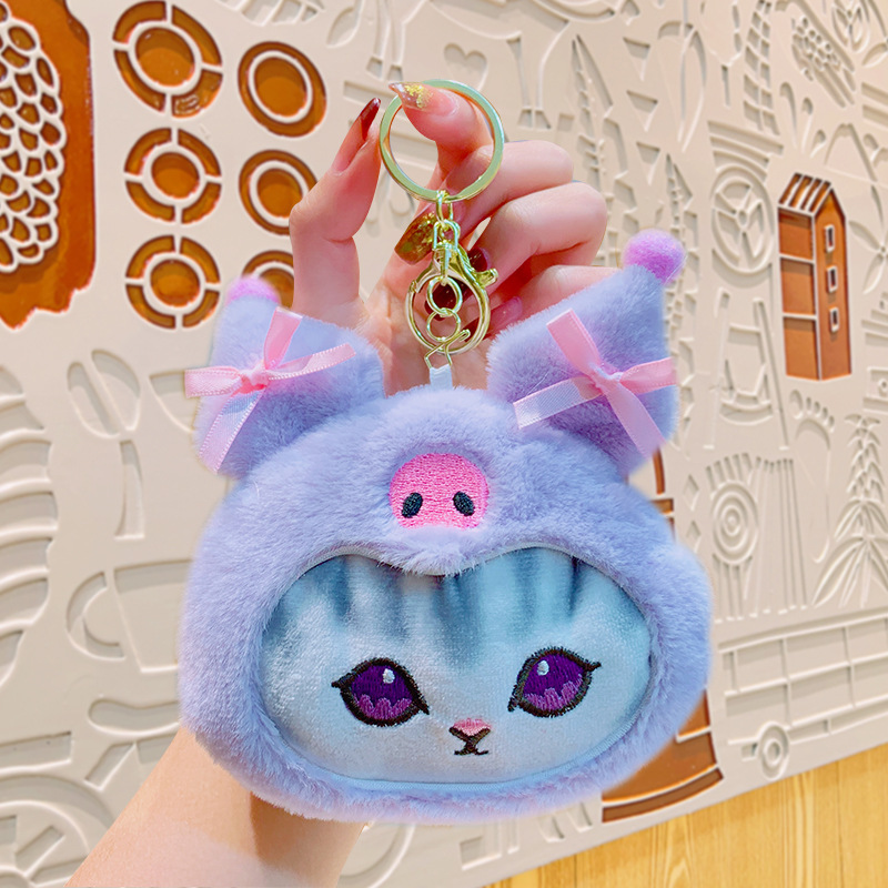 • 봉제 고양이 머리띠 동전 지갑 - 퍼플 쿠로미
