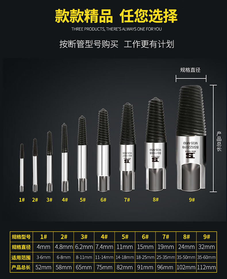 BoSi 깨진 와이어 추출기 슬라이드 치아 골절 나사 수도꼭지 삼각형 밸브 수도관 깨진 나사스토어 가기