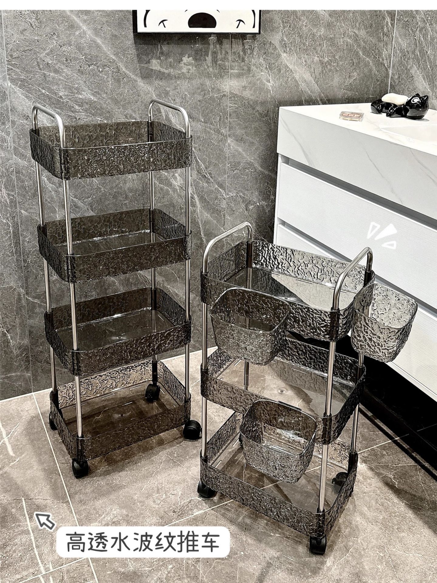 • 물결무늬, 투명회색 3겹 + 걸이바구니*3