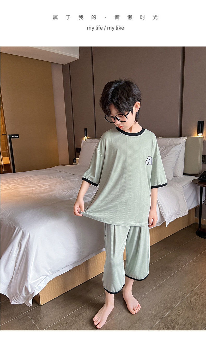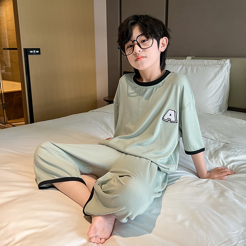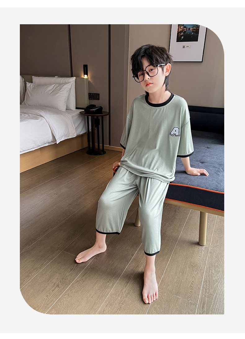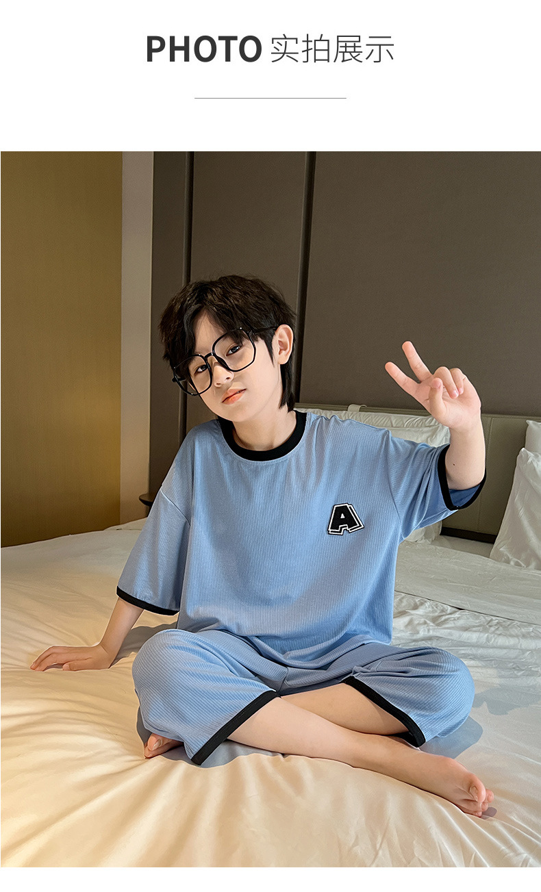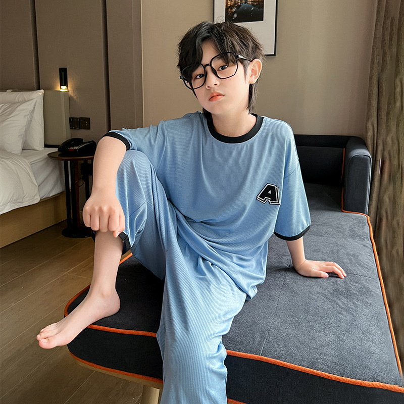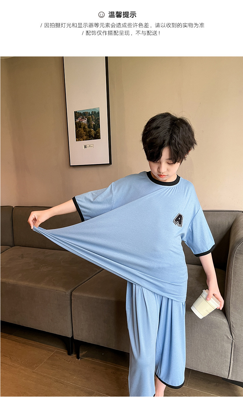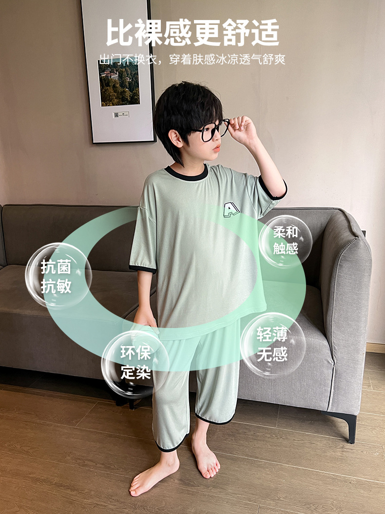 여름 새로운 아이스 실크 어린이 홈 의류 중 큰 어린이 캐주얼 편안한 에어컨 의류 패션 파자마 투피스 세트스토어 가기