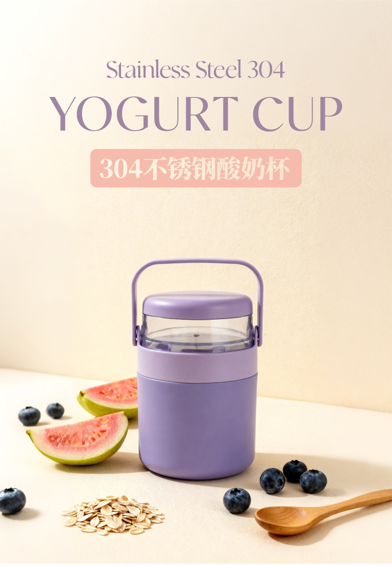 크로스보더 304 스테인리스 요거트컵 식기세척기 사용 가능 어린이 오트밀컵 휴대용 우유컵 고급스러운 아침식사컵