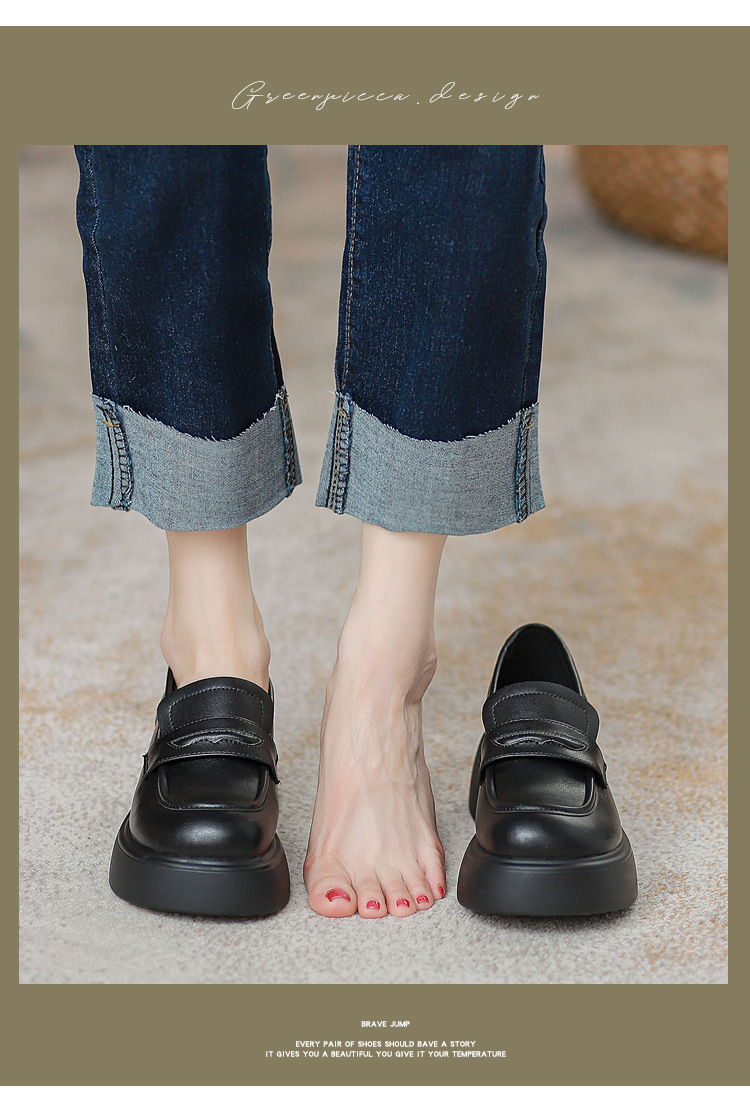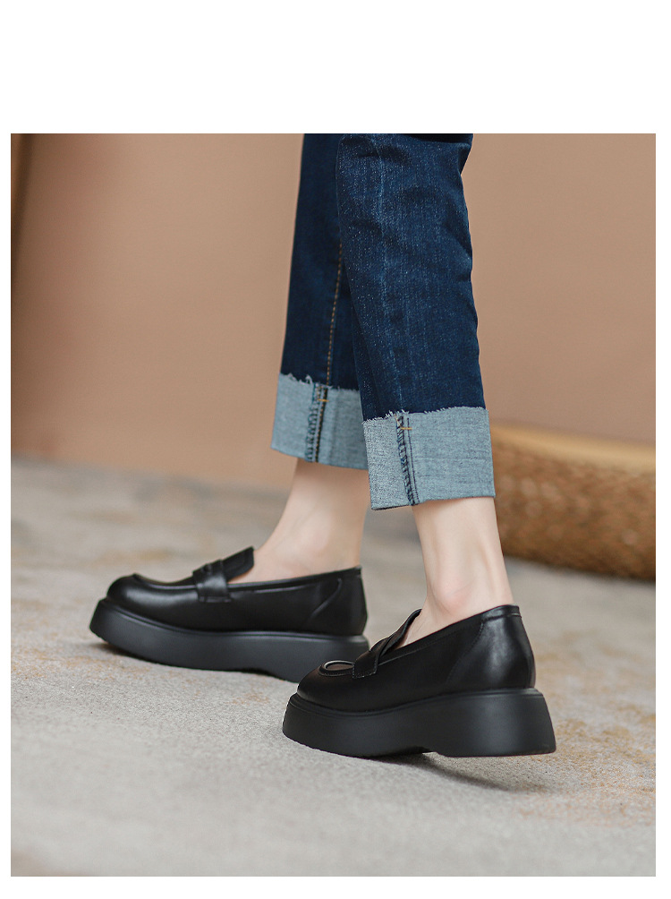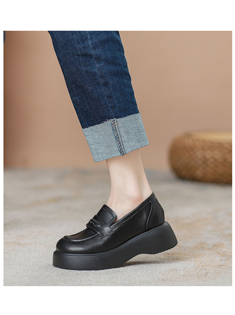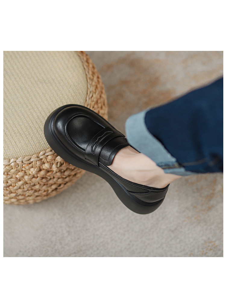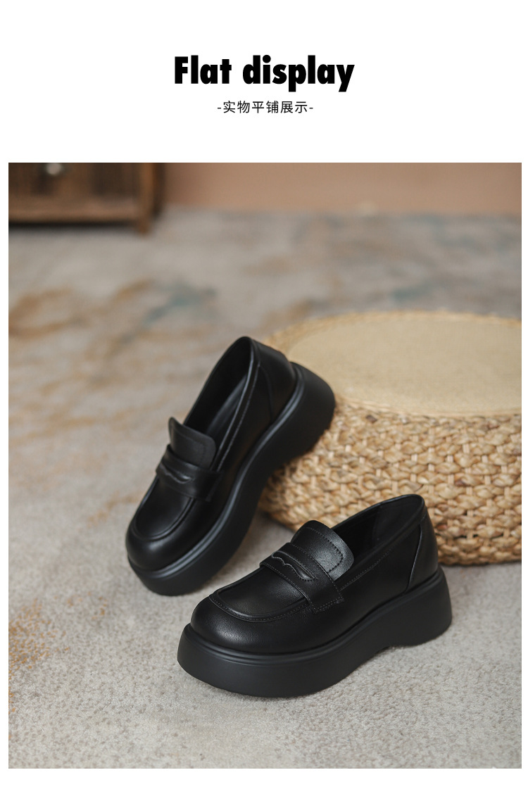 여성을위한 정품 가죽 두꺼운 밑창 로퍼 2024 봄, 가을 새로운 시즌 플랫폼 블랙 다용도 신발 jk 영국 스타일 작은 가죽 신발스토어 가기