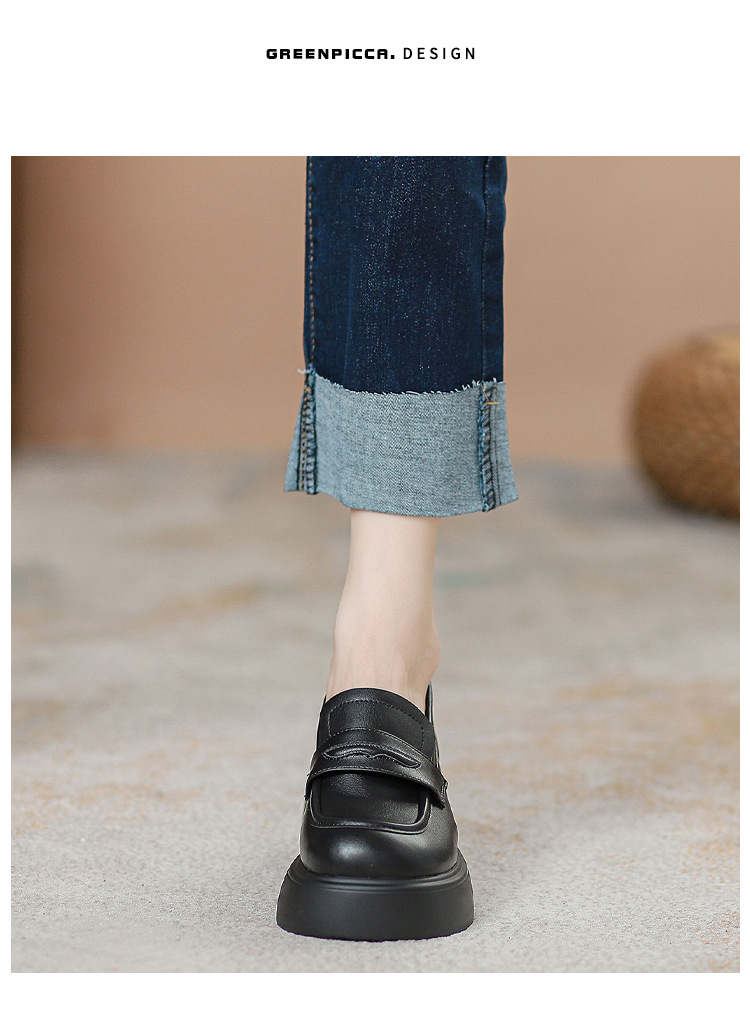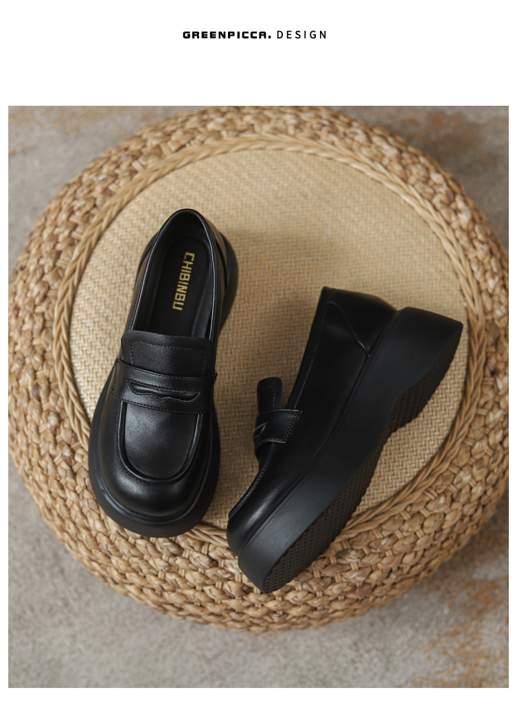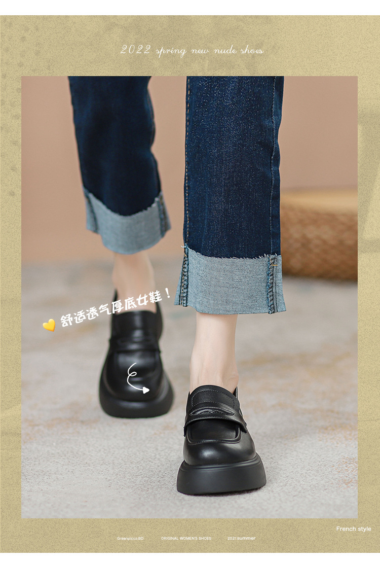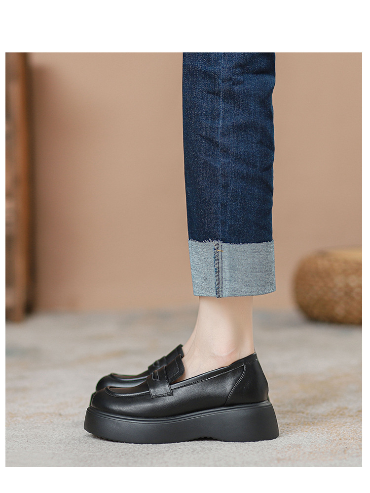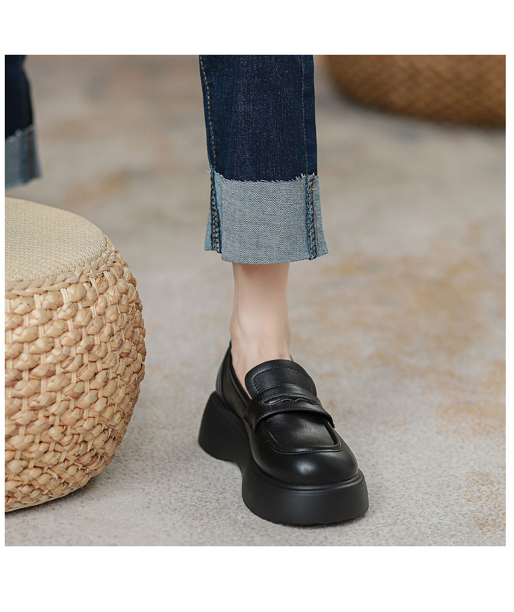 여성을위한 정품 가죽 두꺼운 밑창 로퍼 2024 봄, 가을 새로운 시즌 플랫폼 블랙 다용도 신발 jk 영국 스타일 작은 가죽 신발스토어 가기