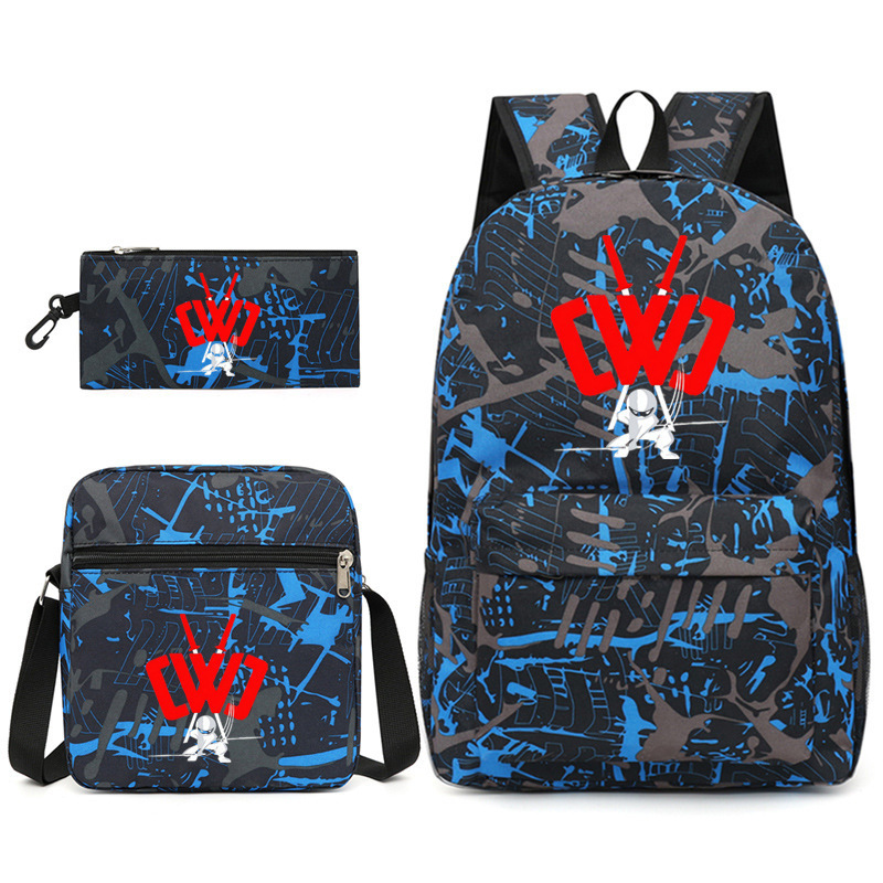 채드 와일드 클레이 게임 패턴 배낭 숄더백 연필 케이스 3 피스 창조적 인 캐주얼 학생 책가방