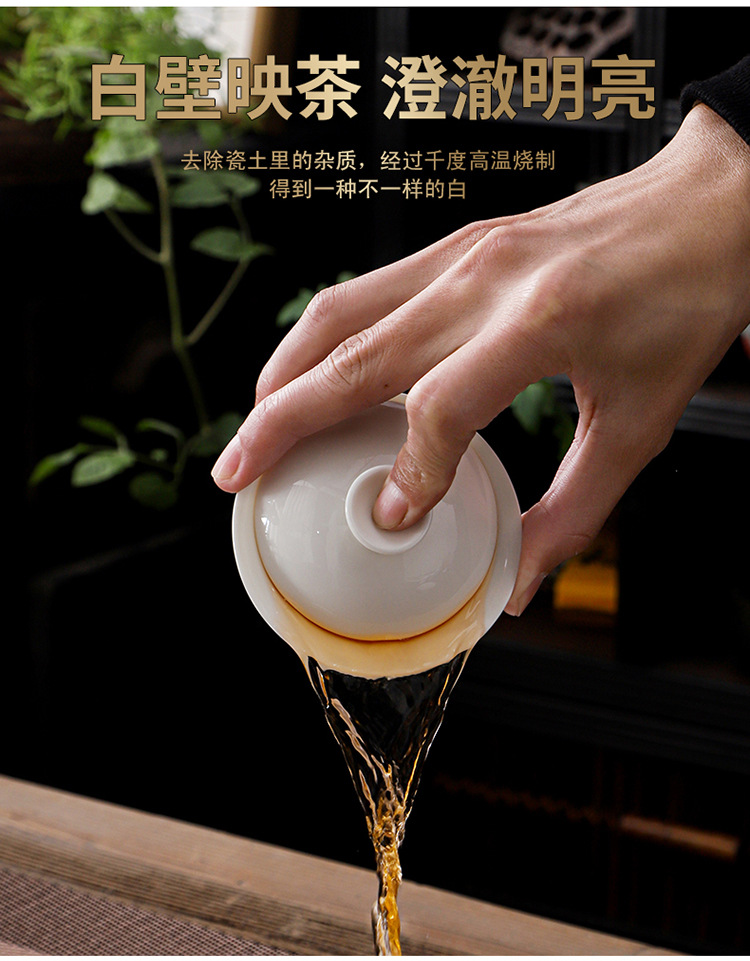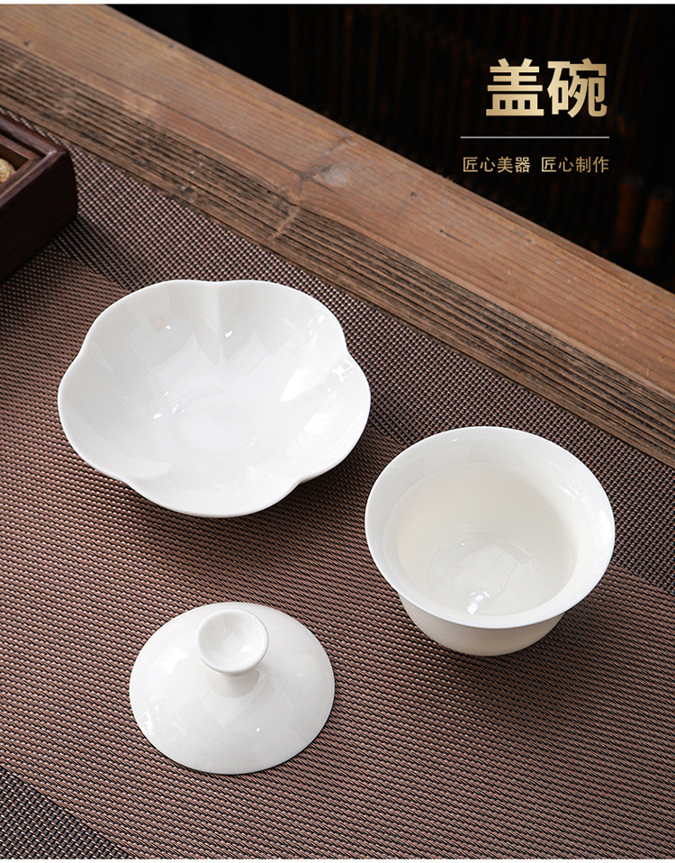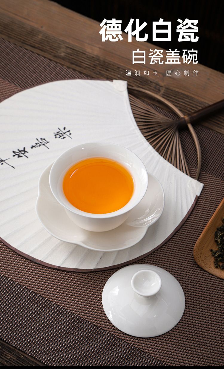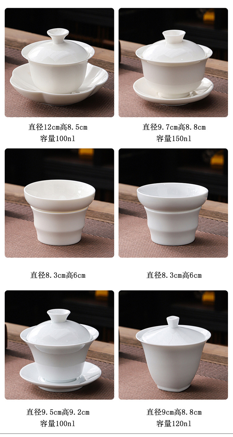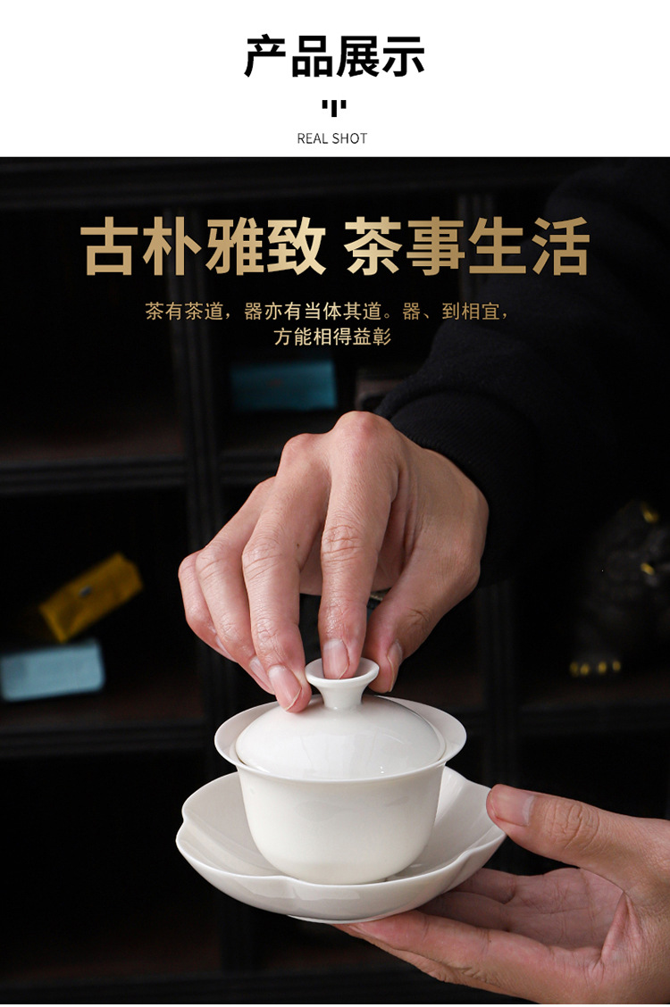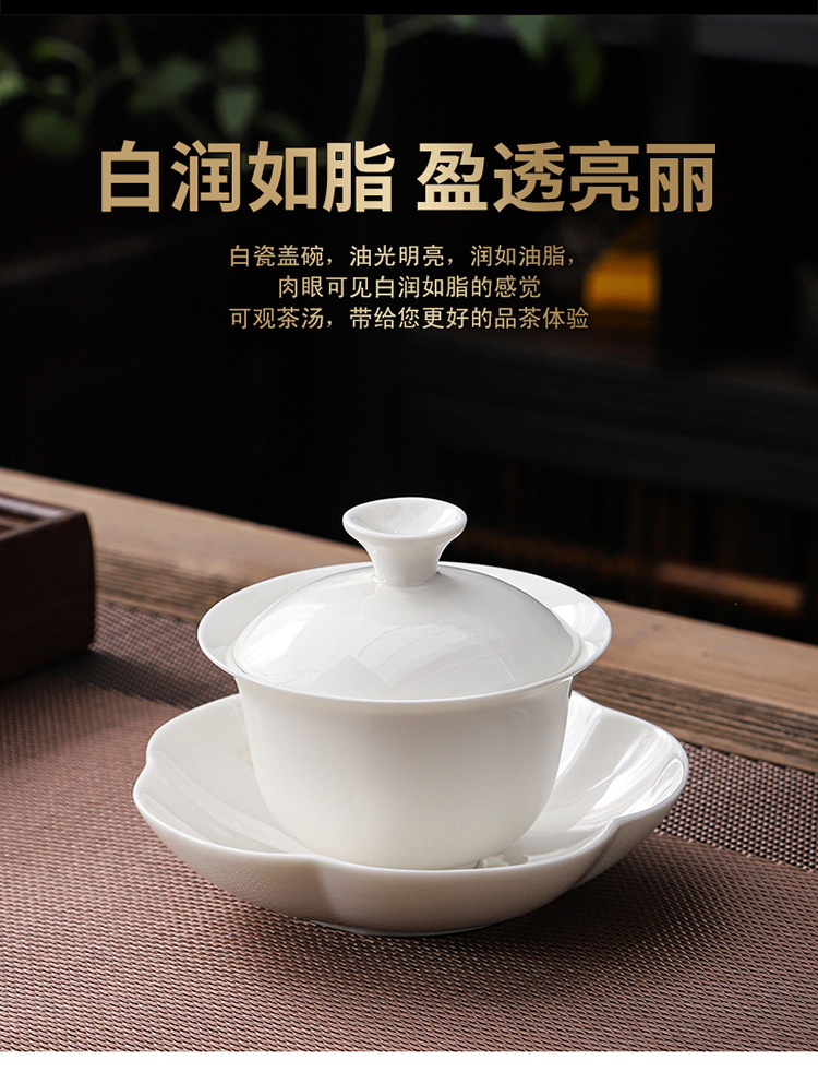 Dehua 양 지방 옥 흰색 도자기 커버 그릇 단일 세라믹 큰 차 그릇 차 그릇 3 피스 커버 그릇은 로고를 사용자 정의 할 수 있습니다스토어 가기