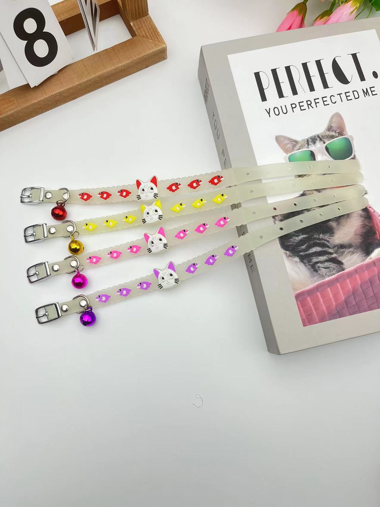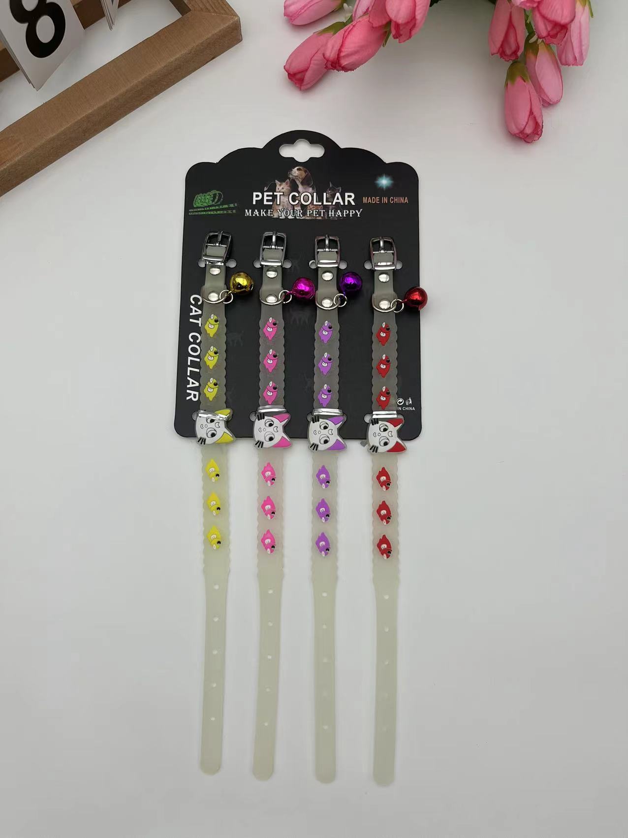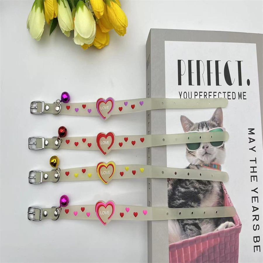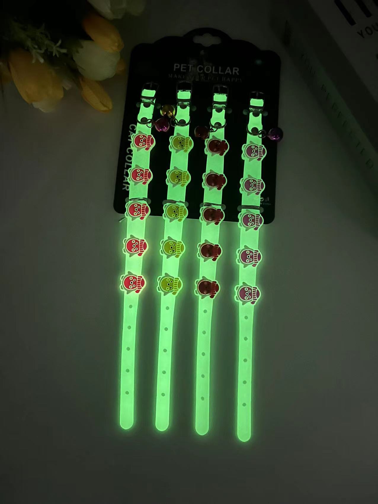 국경 간 새로운 애완 동물 형광 칼라 만화 실리콘 칼라 야간 여행 잃어버린 고양이 개 목걸이