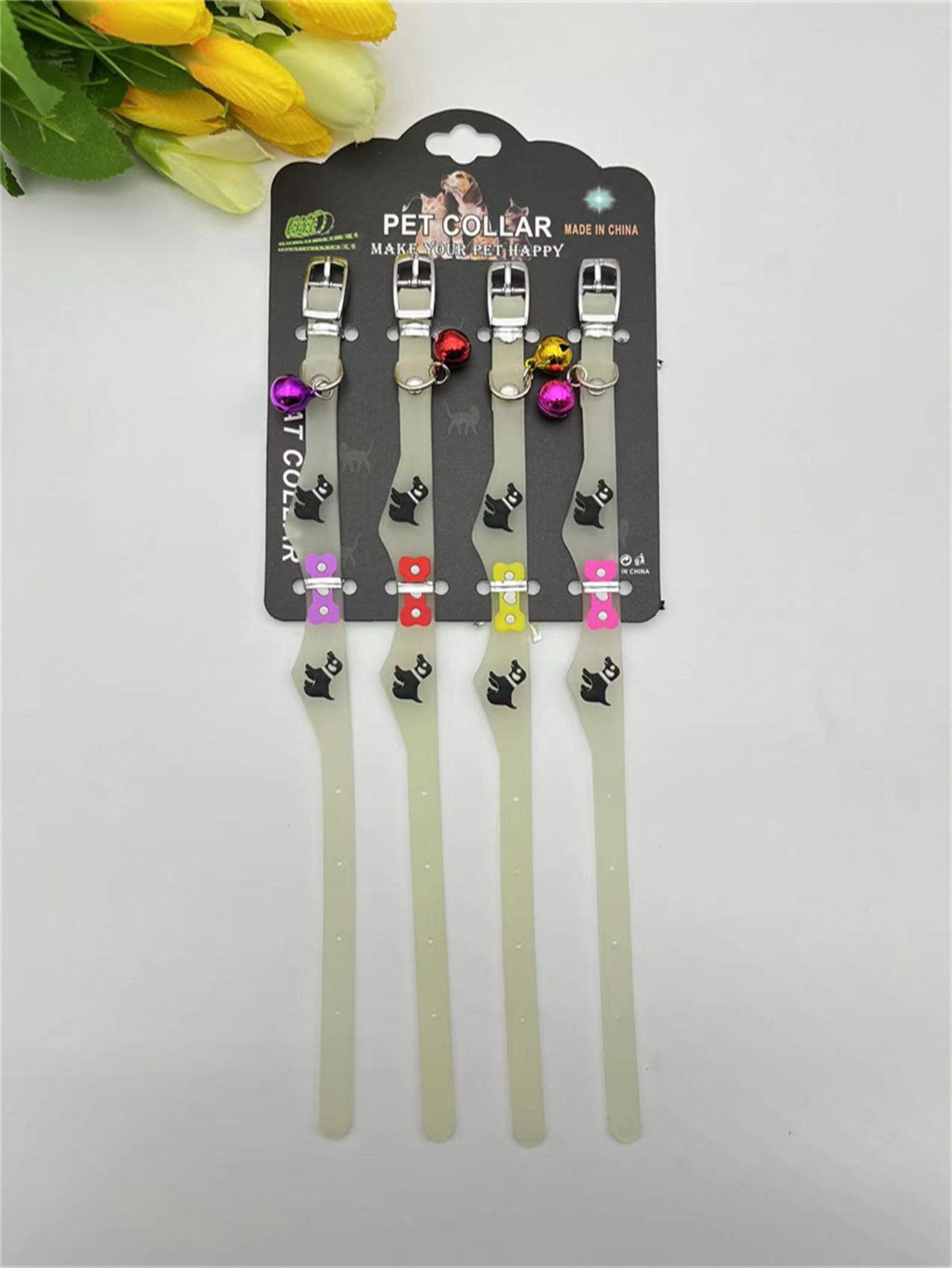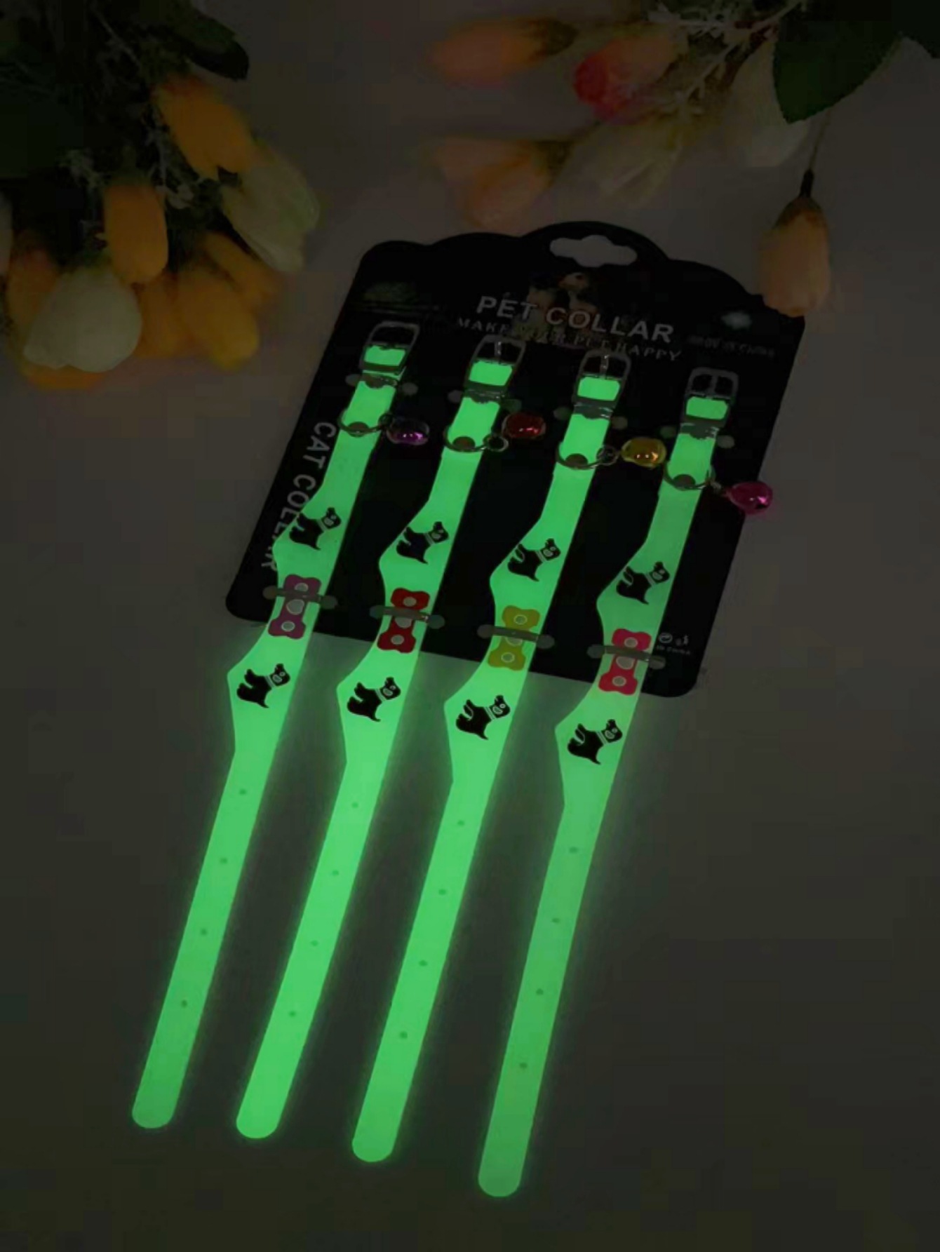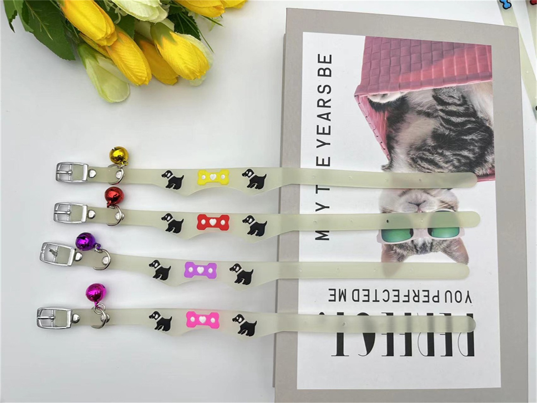 국경 간 새로운 애완 동물 형광 칼라 만화 실리콘 칼라 야간 여행 잃어버린 고양이 개 목걸이