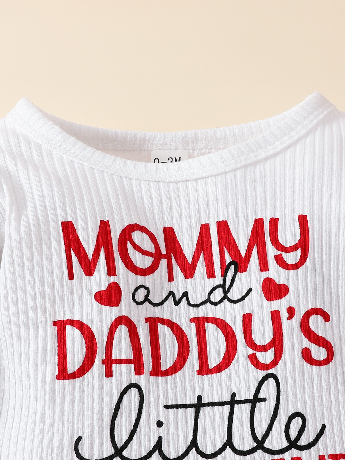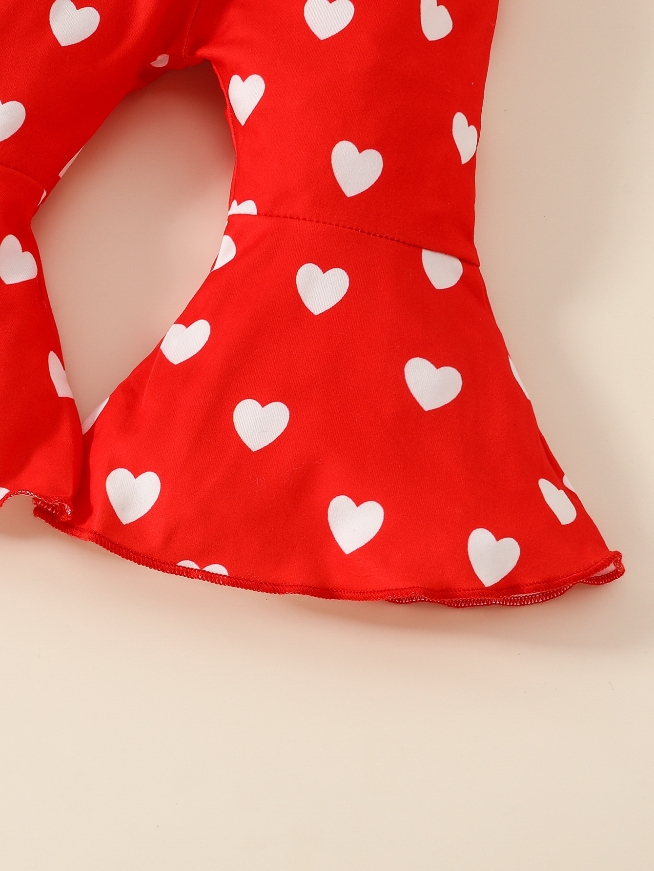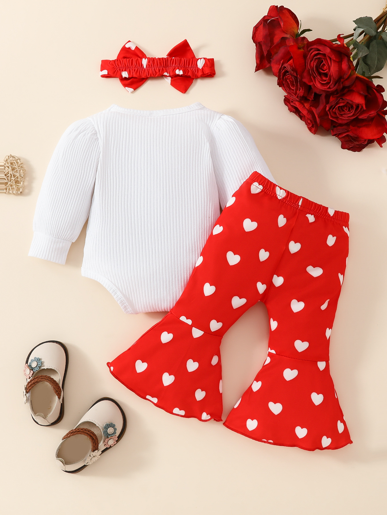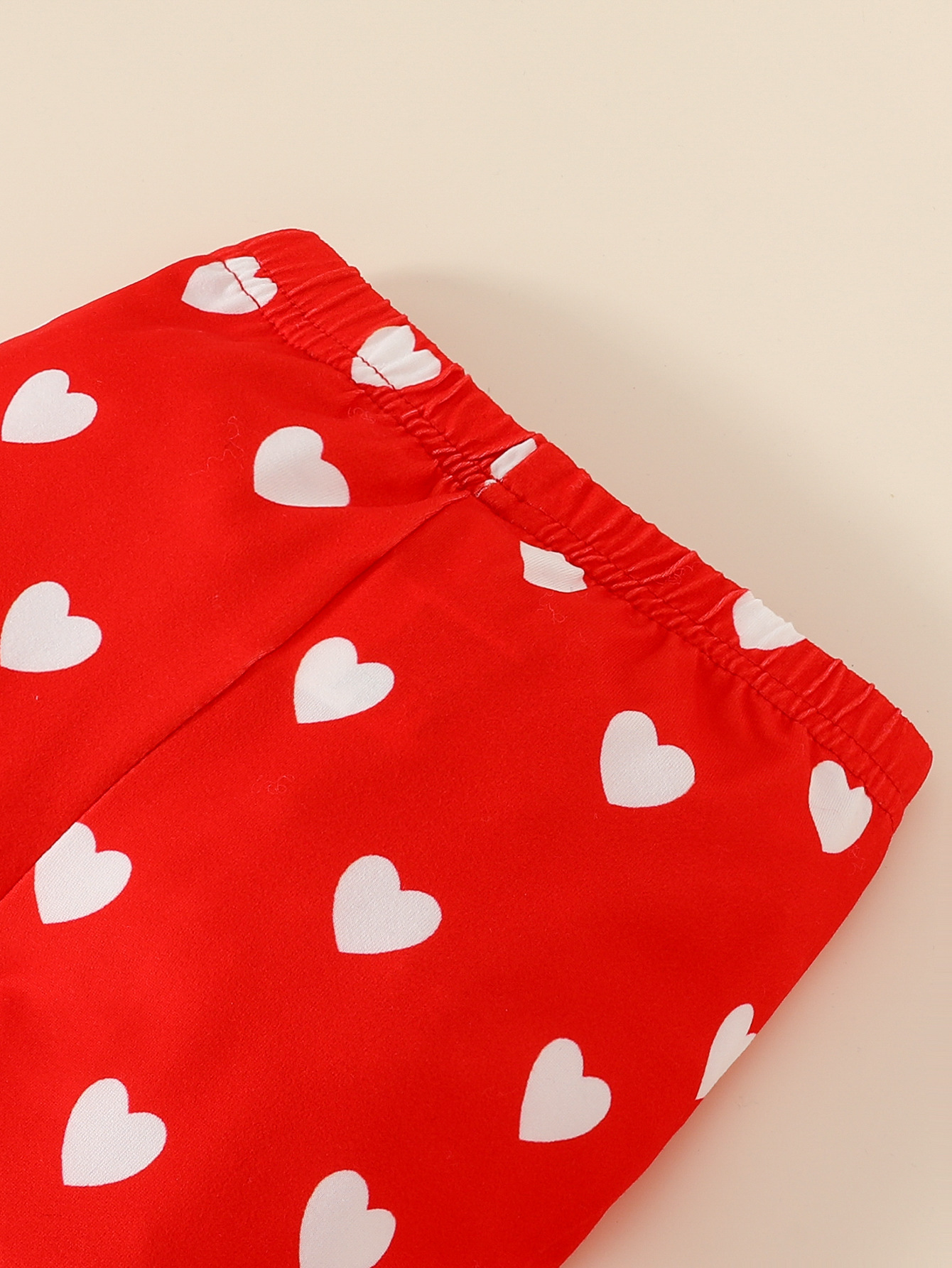발렌타인 데이 소녀의 봄과 가을 긴 소매 구덩이 편지 인쇄 하퍼 사랑 바지 헤어 벨트 3 조각 세트