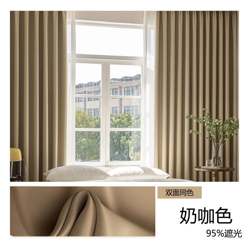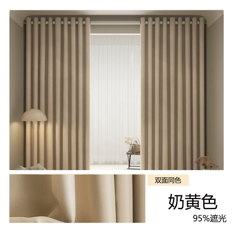 두꺼운 커튼 원단 크림색 학교 사무실 자외선 차단 단열 공사 호텔 커튼 고차광 커튼 완제품스토어 가기