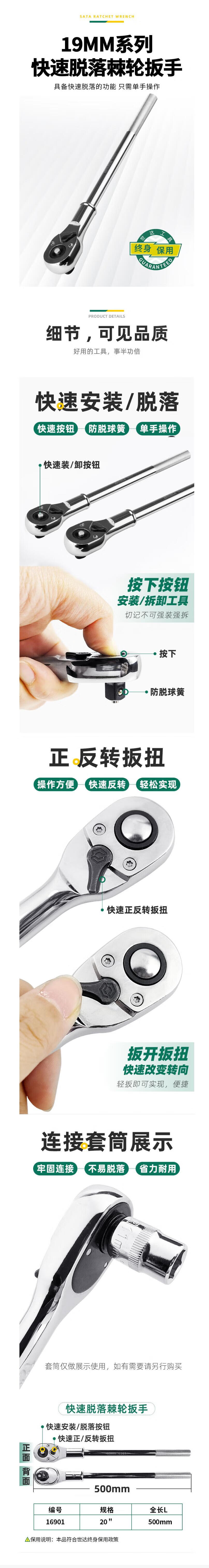 SATA 19MM 시리즈 빠른 래칫 렌치 20 "16901 소켓 래칫 렌치스토어 가기