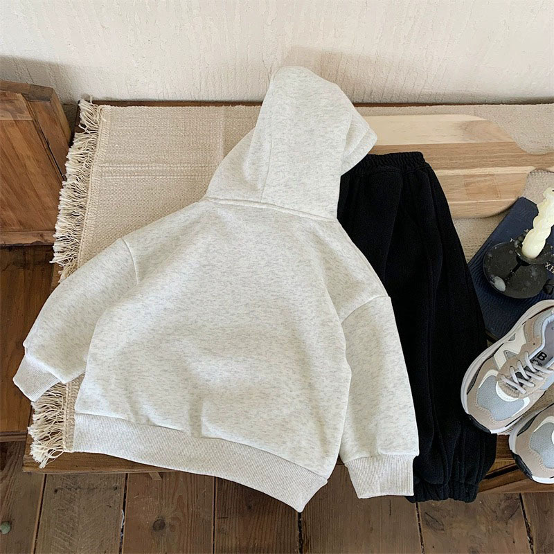 기모 어린이 후드 스웨터 가을과 겨울 2024 패션 브랜드 올 매치 귀여운 어린이 소년 소녀 두꺼운 따뜻한 탑 셔츠스토어 가기