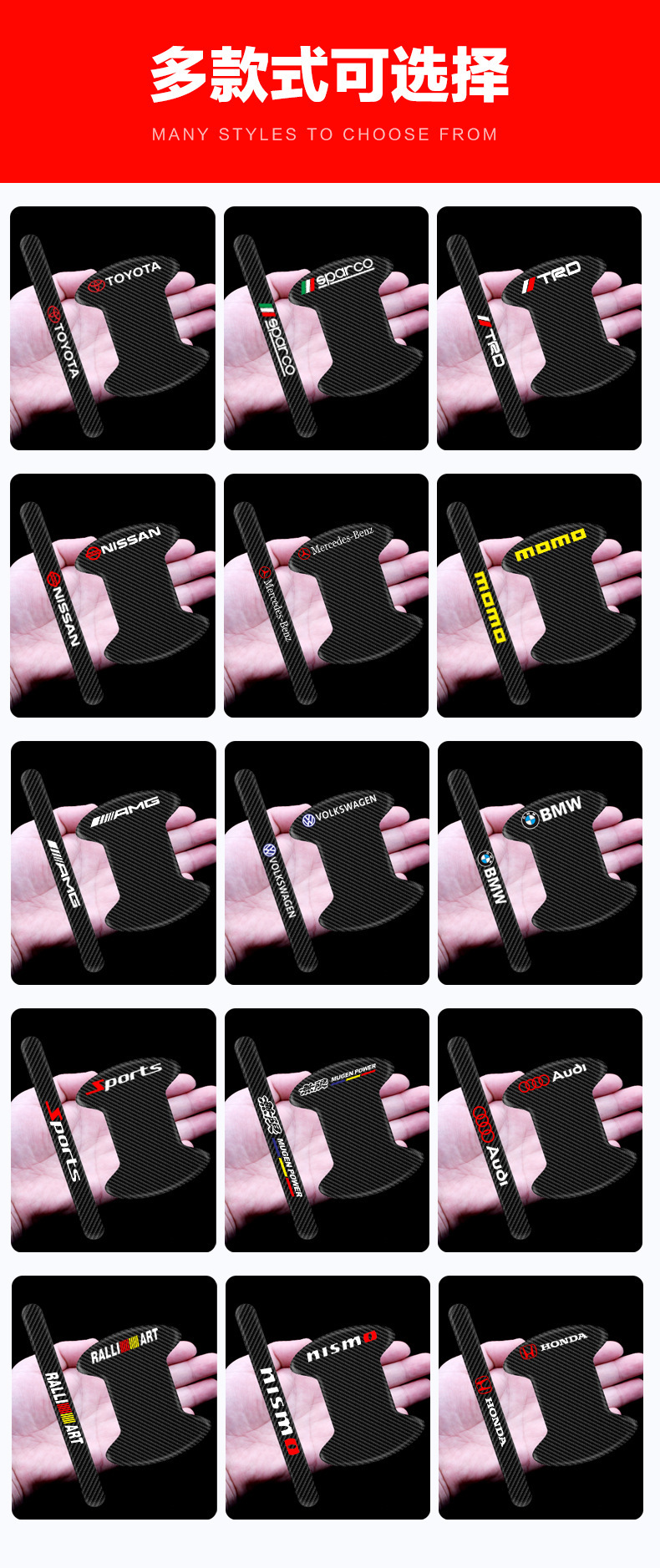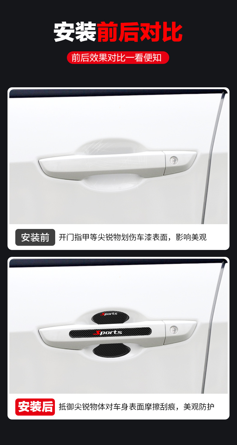자동차 모조 탄소 섬유 에폭시 도어 보울 핸들 보호 필름 페인트 긁힘 방지 도어 충돌 방지 장식 스티커스토어 가기