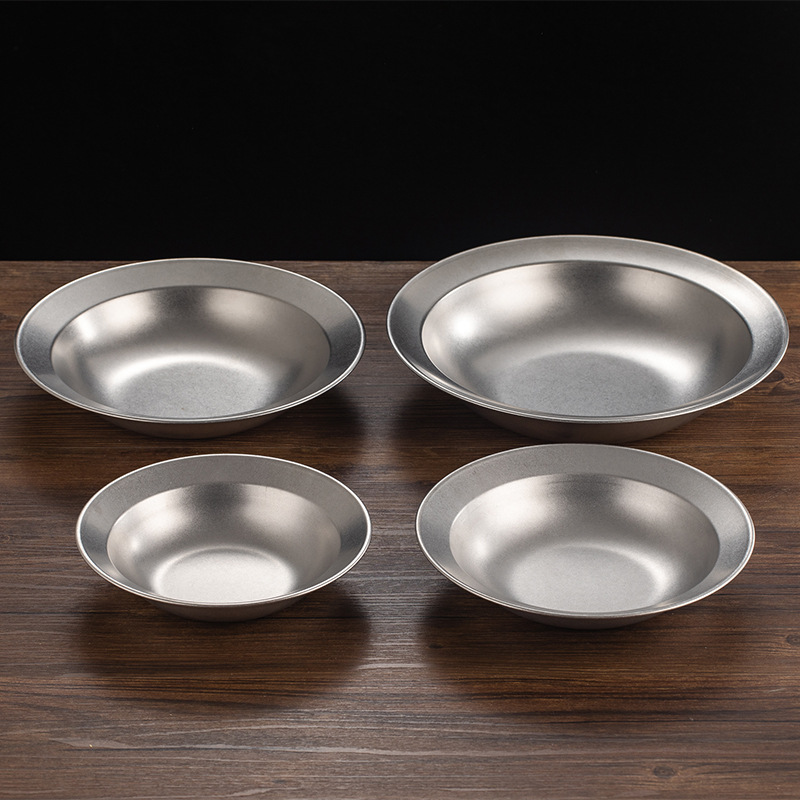 레트로 레트로 야외 캠핑 스테인레스 스틸 가재 분지 밀짚 모자 디스크 접시 수프 플레이트 깊은 플레이트 파스타 샐러드 플레이트
