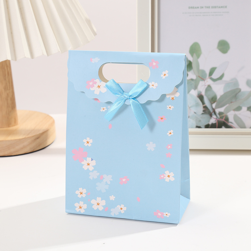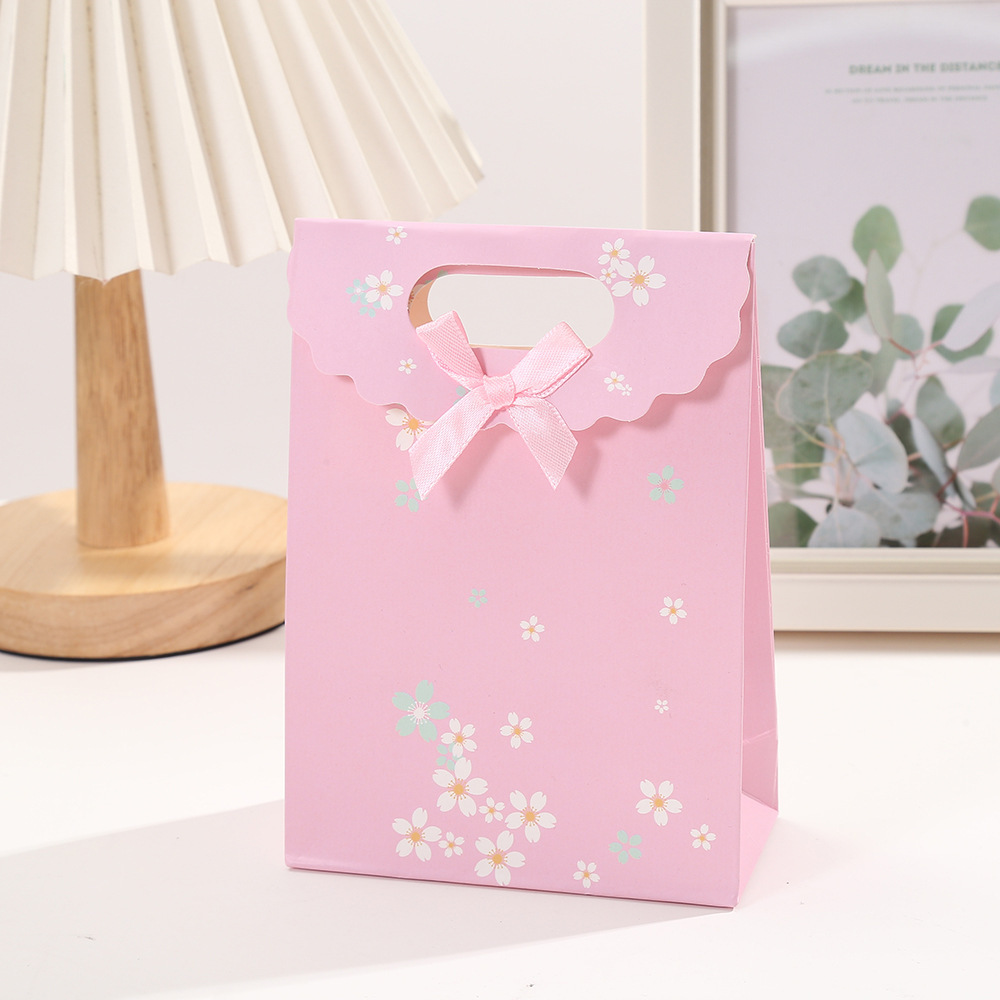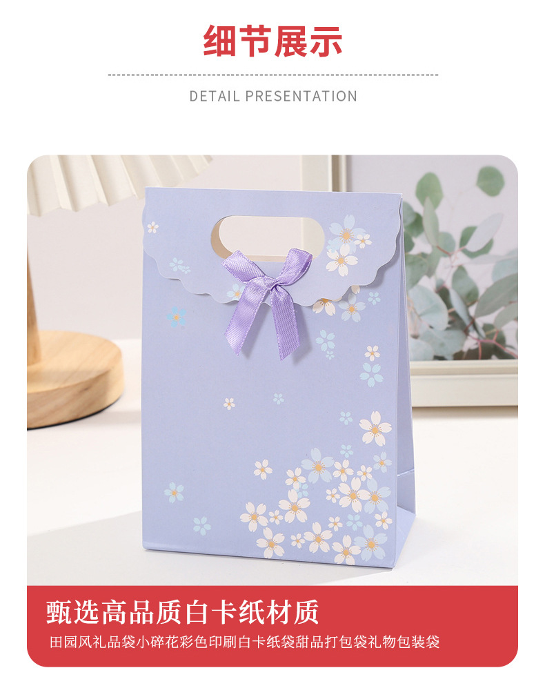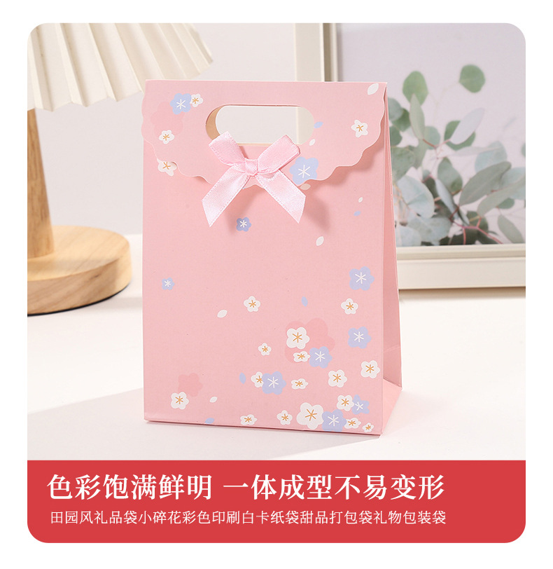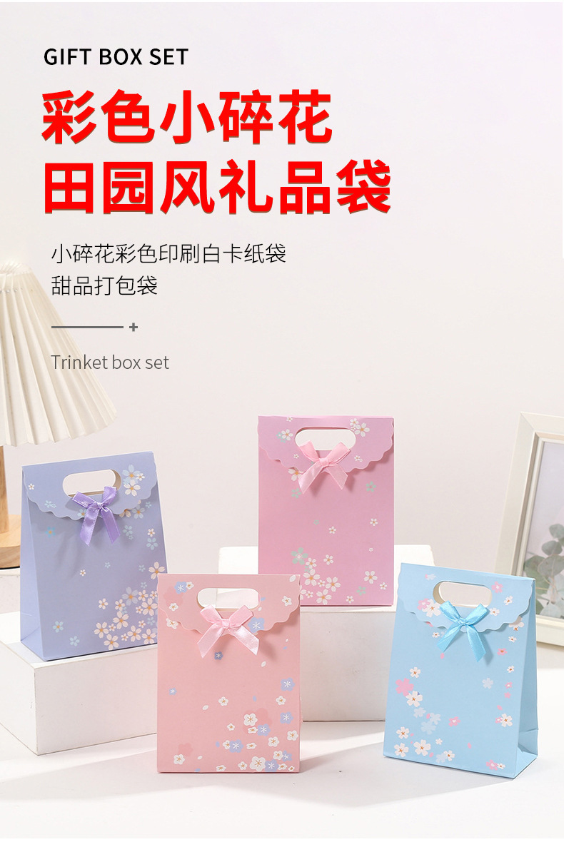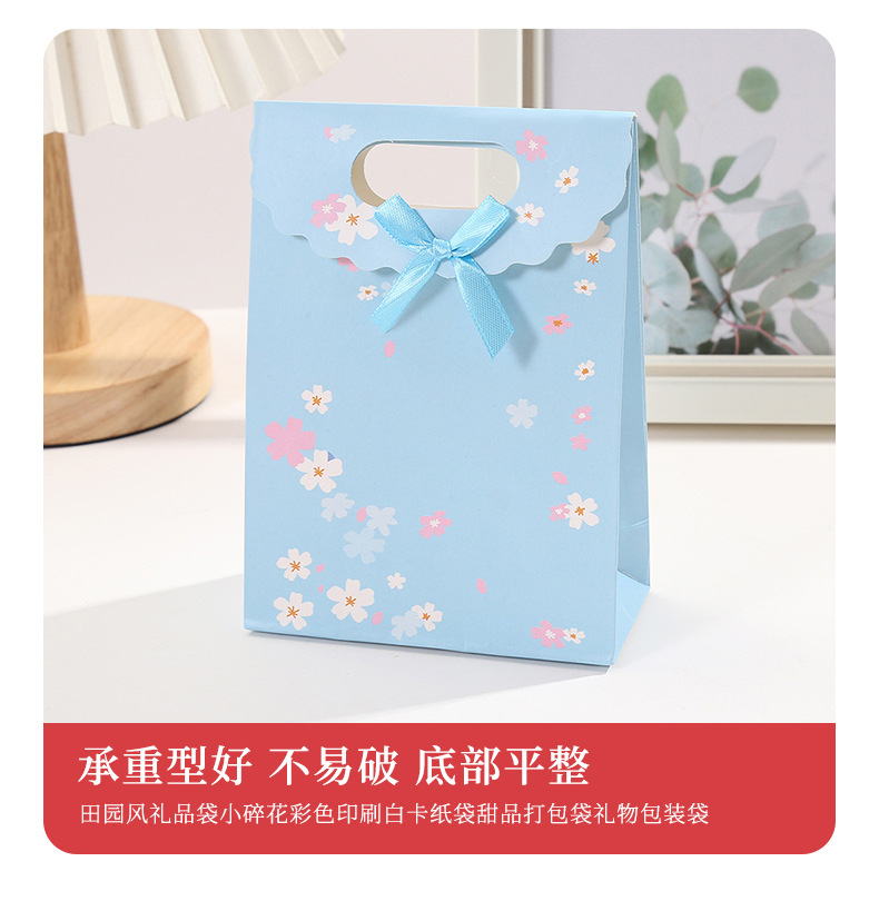 목가적 인 스타일 선물 가방 작은 꽃 무늬 컬러 인쇄 흰색 판지 가방 디저트 포장 가방 생일 선물 포장 가방
