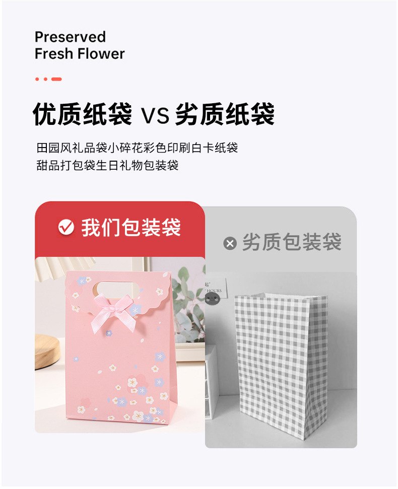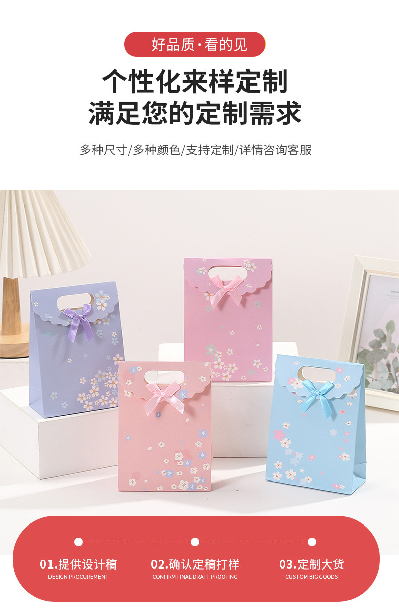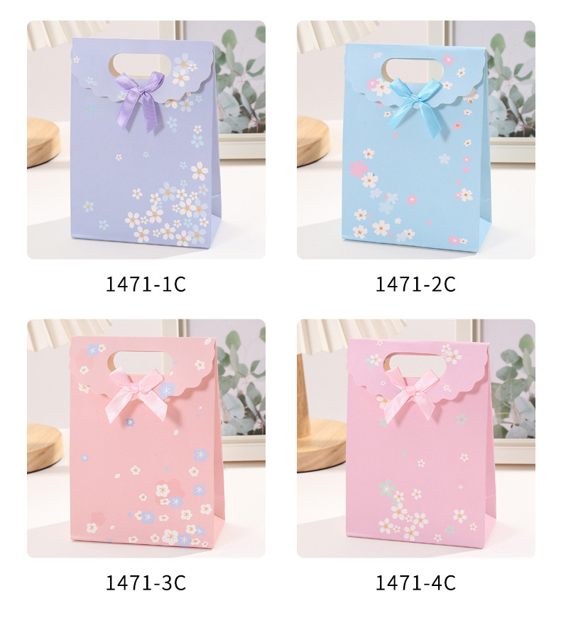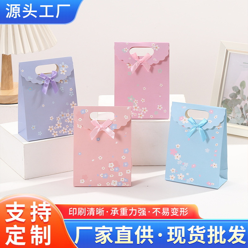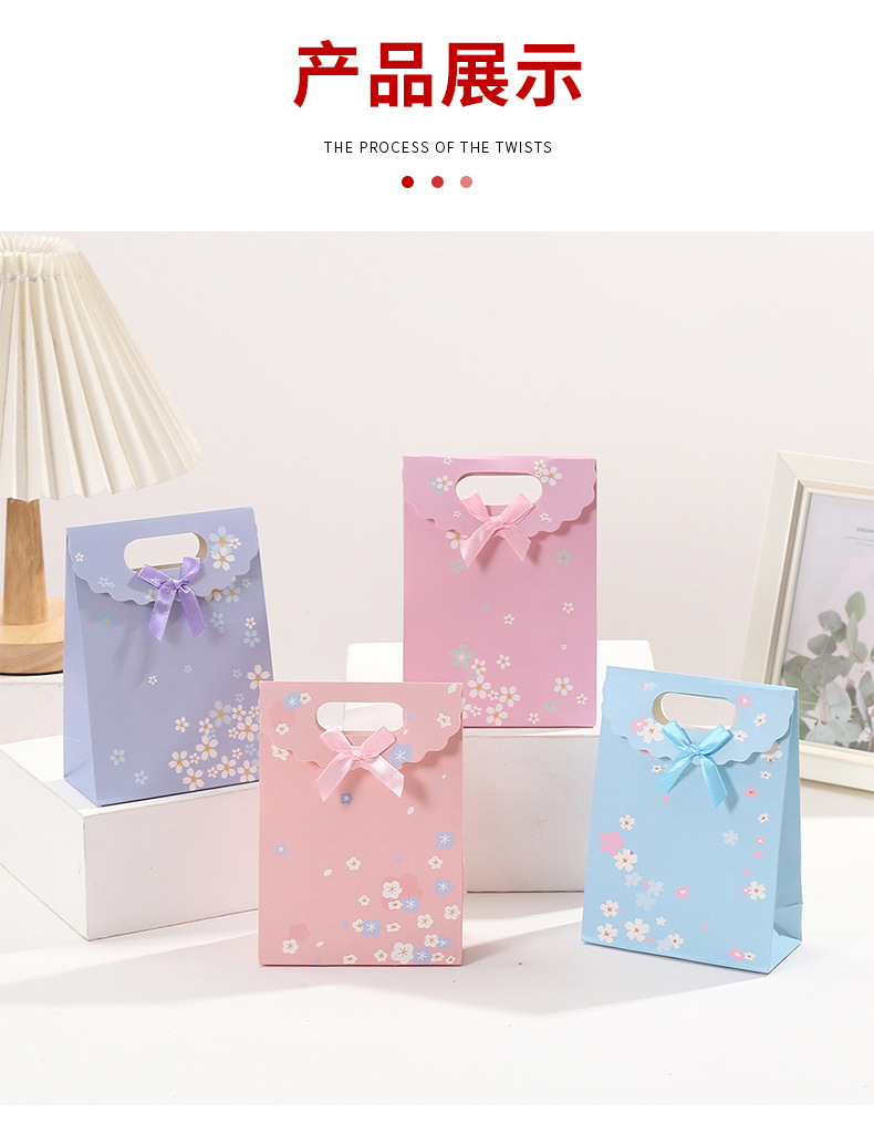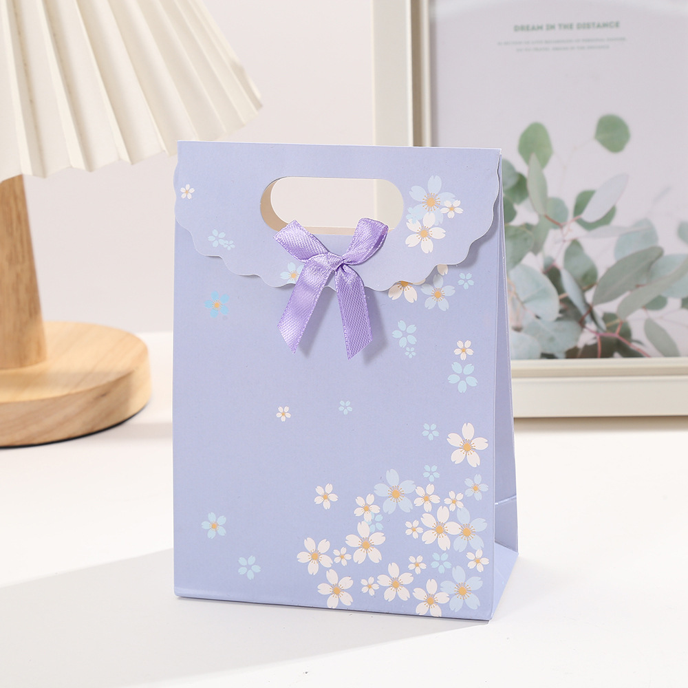 목가적 인 스타일 선물 가방 작은 꽃 무늬 컬러 인쇄 흰색 판지 가방 디저트 포장 가방 생일 선물 포장 가방