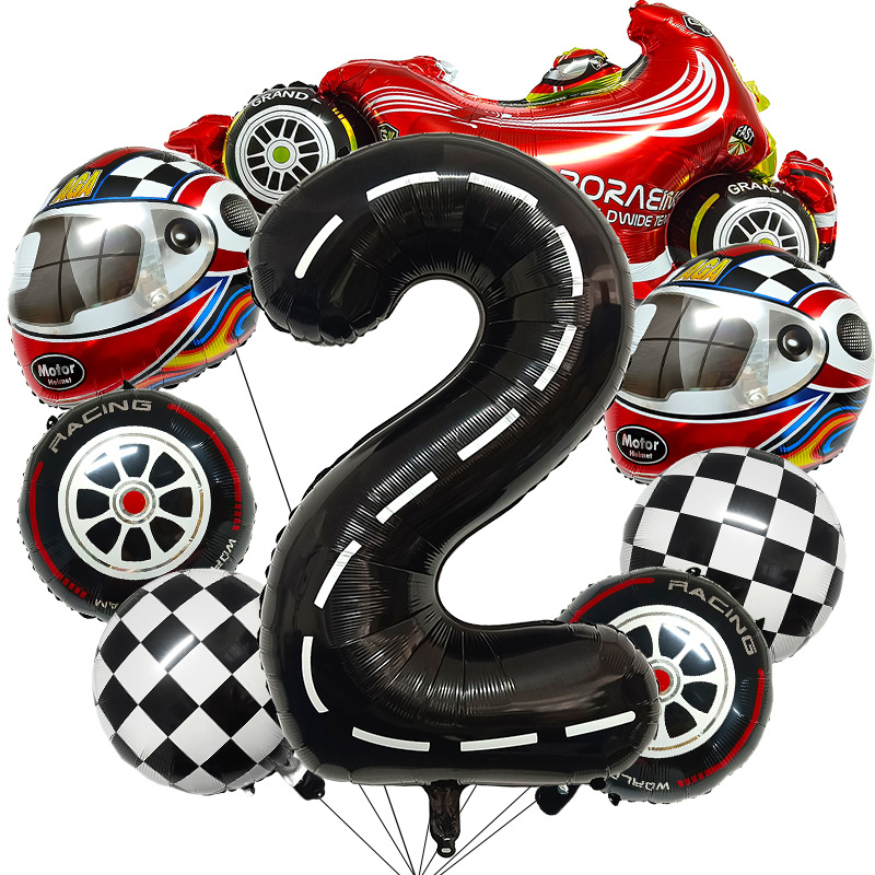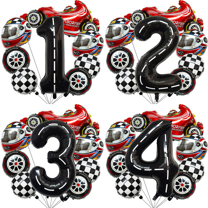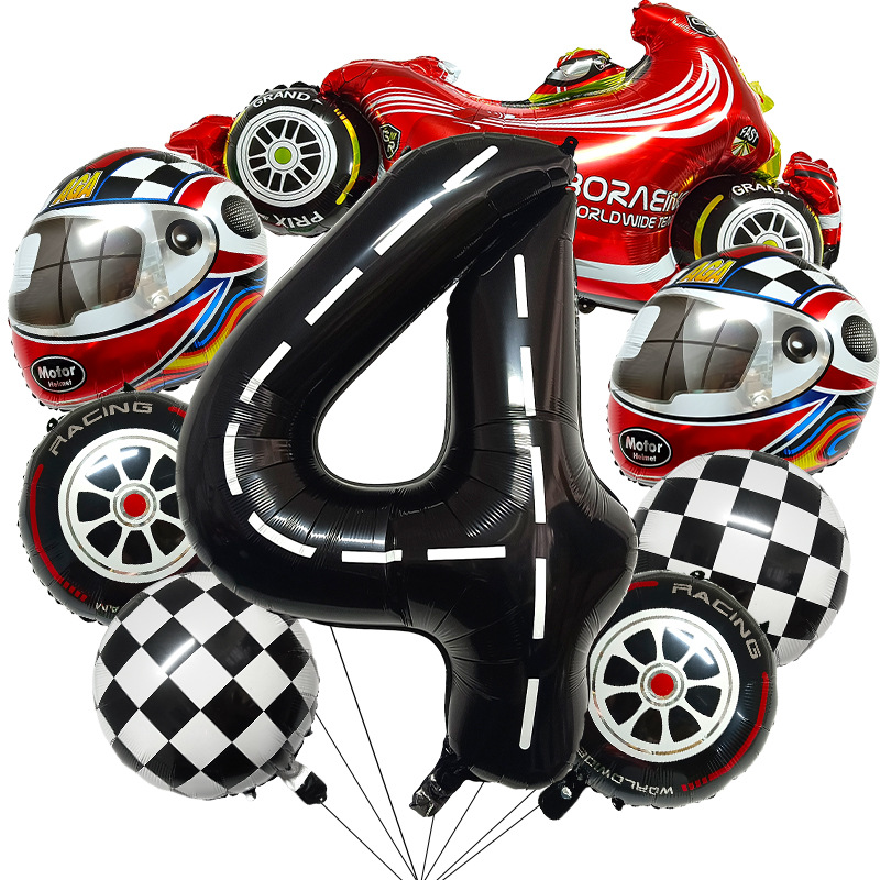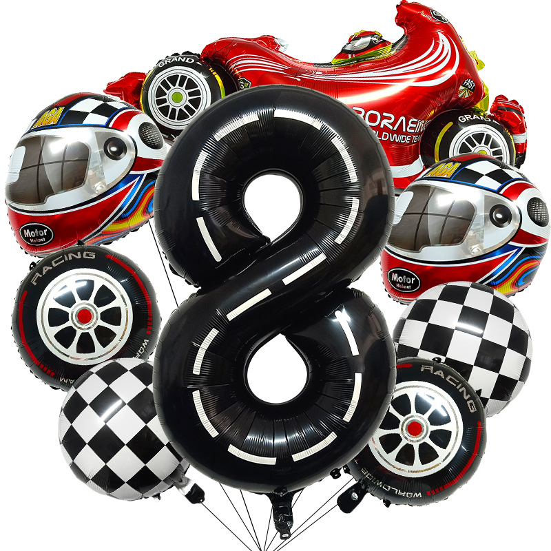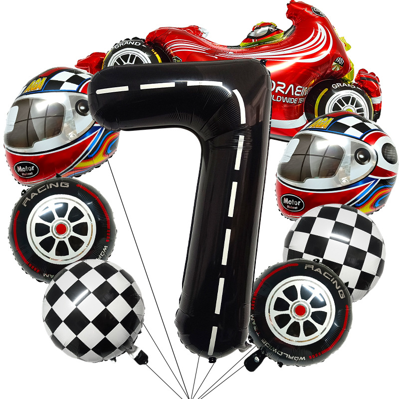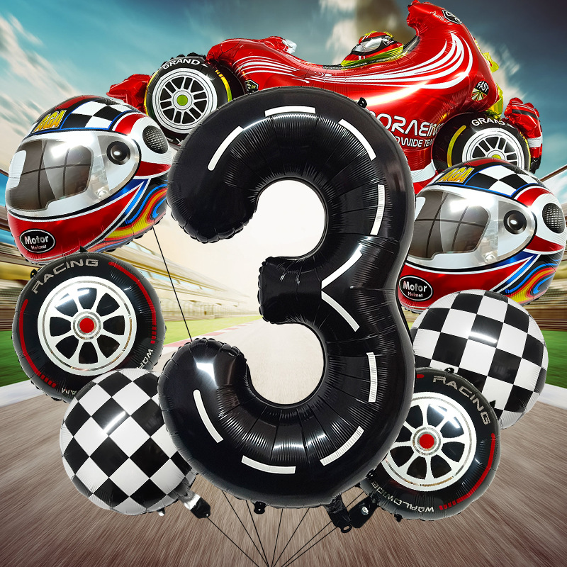 새로운 2023 레이싱 40 인치 흑백 디지털 헬멧 알루미늄 풍선 세트 어린이 생일 파티 장면 장식스토어 가기