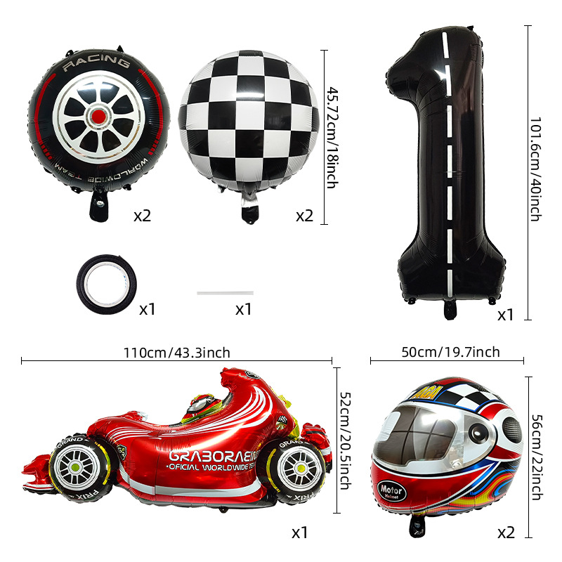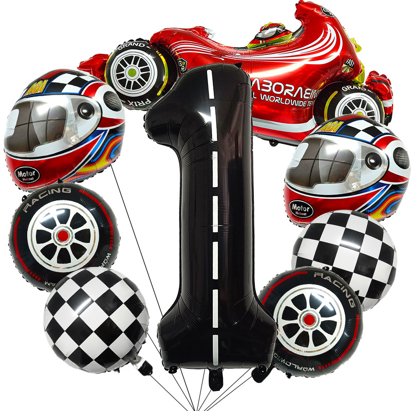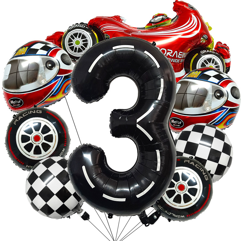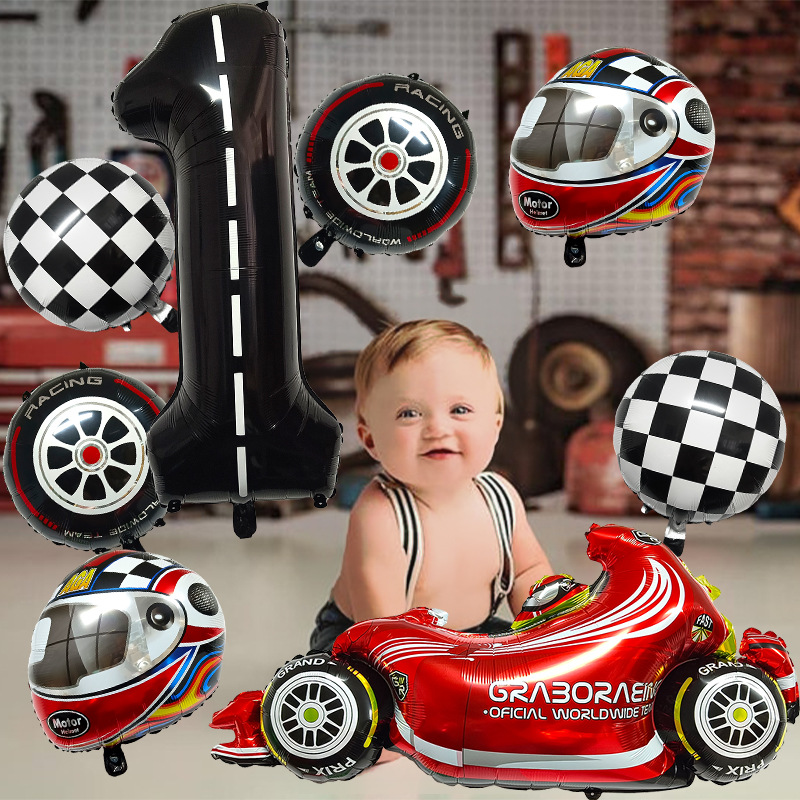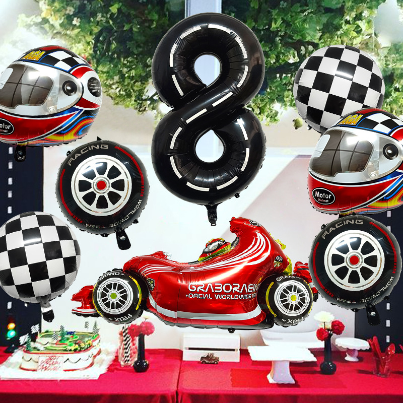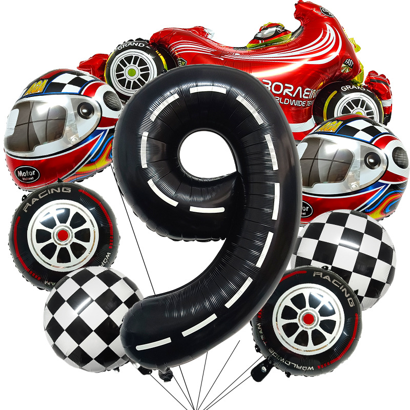 새로운 2023 레이싱 40 인치 흑백 디지털 헬멧 알루미늄 풍선 세트 어린이 생일 파티 장면 장식스토어 가기