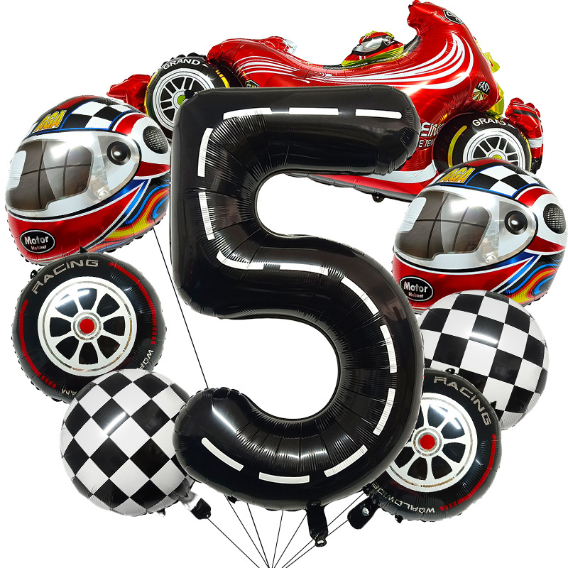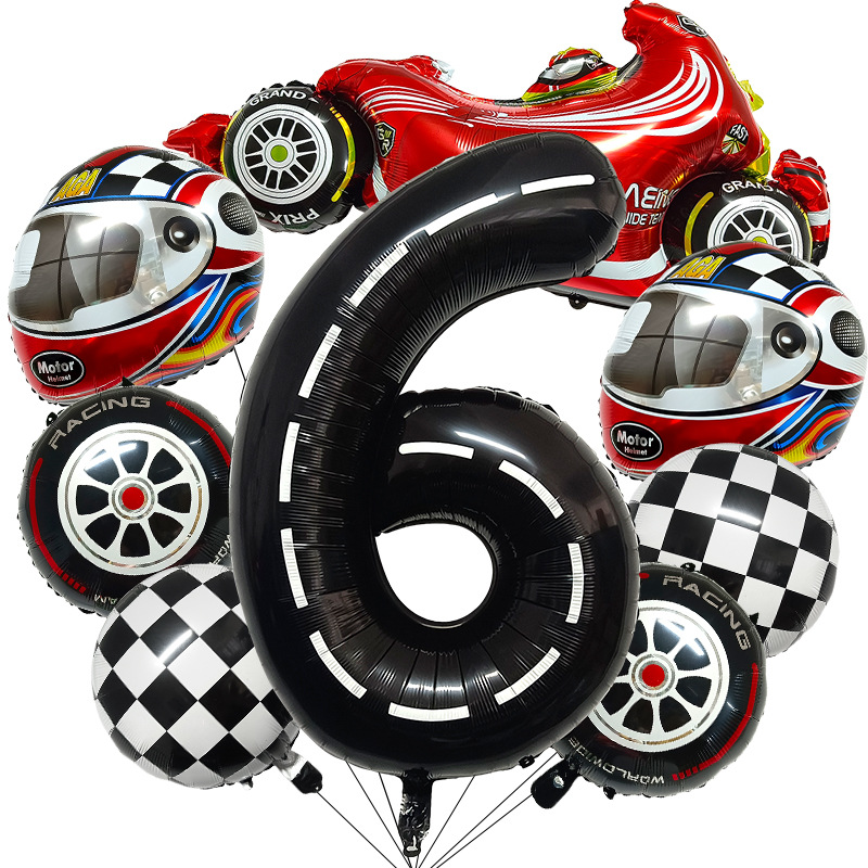 새로운 2023 레이싱 40 인치 흑백 디지털 헬멧 알루미늄 풍선 세트 어린이 생일 파티 장면 장식