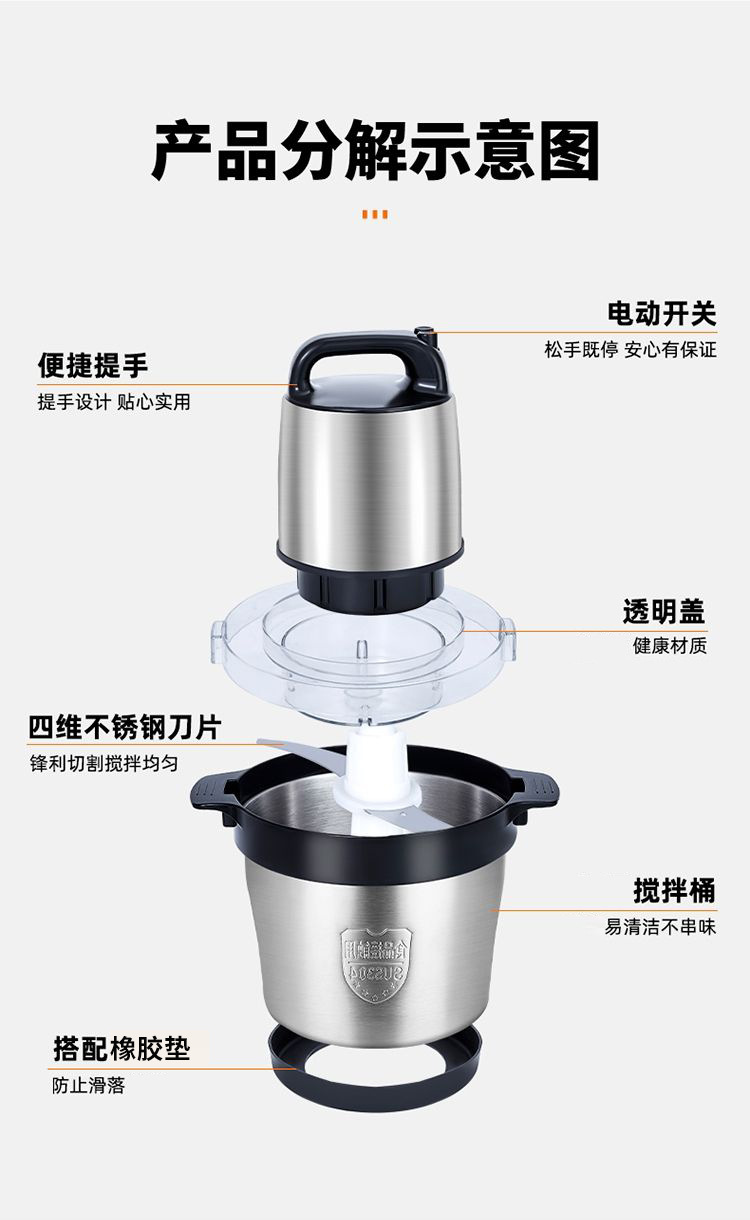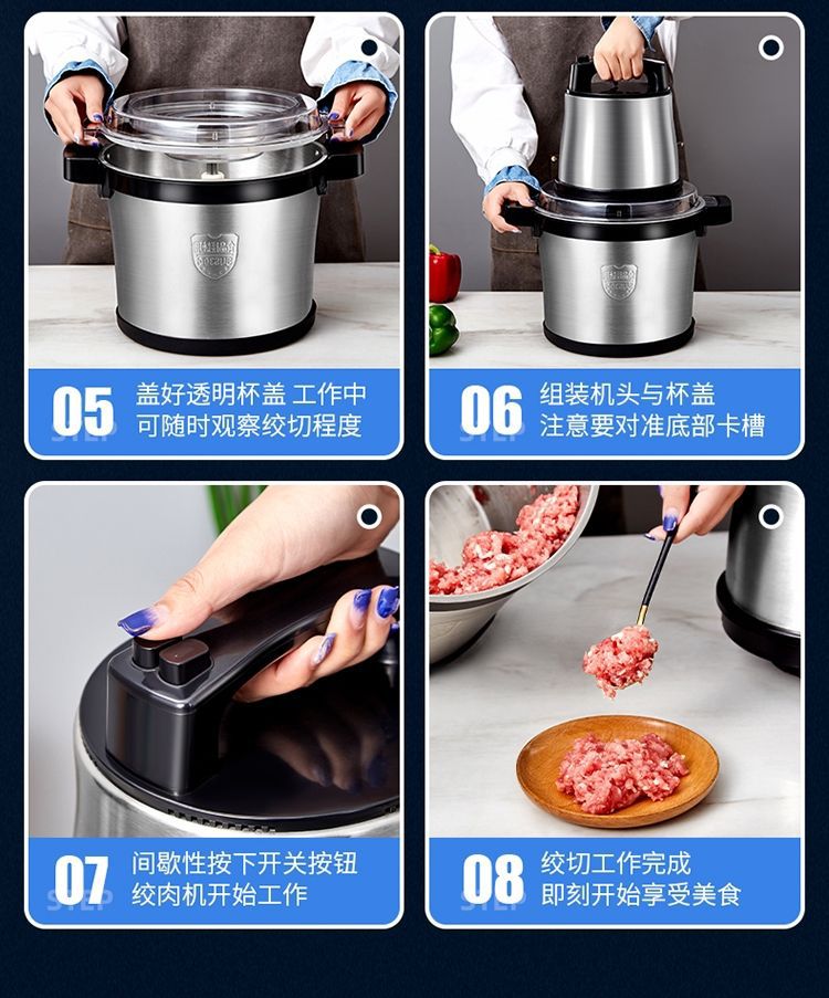 6L 전기 고기 민서 상업적인 큰 수용량 마늘 혼합 및 국수 미트볼 가정용 전기 스테인리스 육류 기계