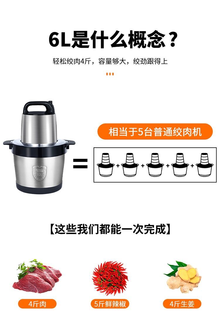 6L 전기 고기 민서 상업적인 큰 수용량 마늘 혼합 및 국수 미트볼 가정용 전기 스테인리스 육류 기계스토어 가기