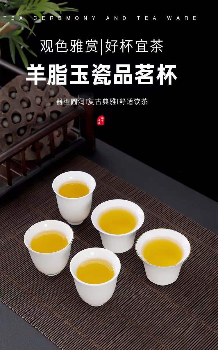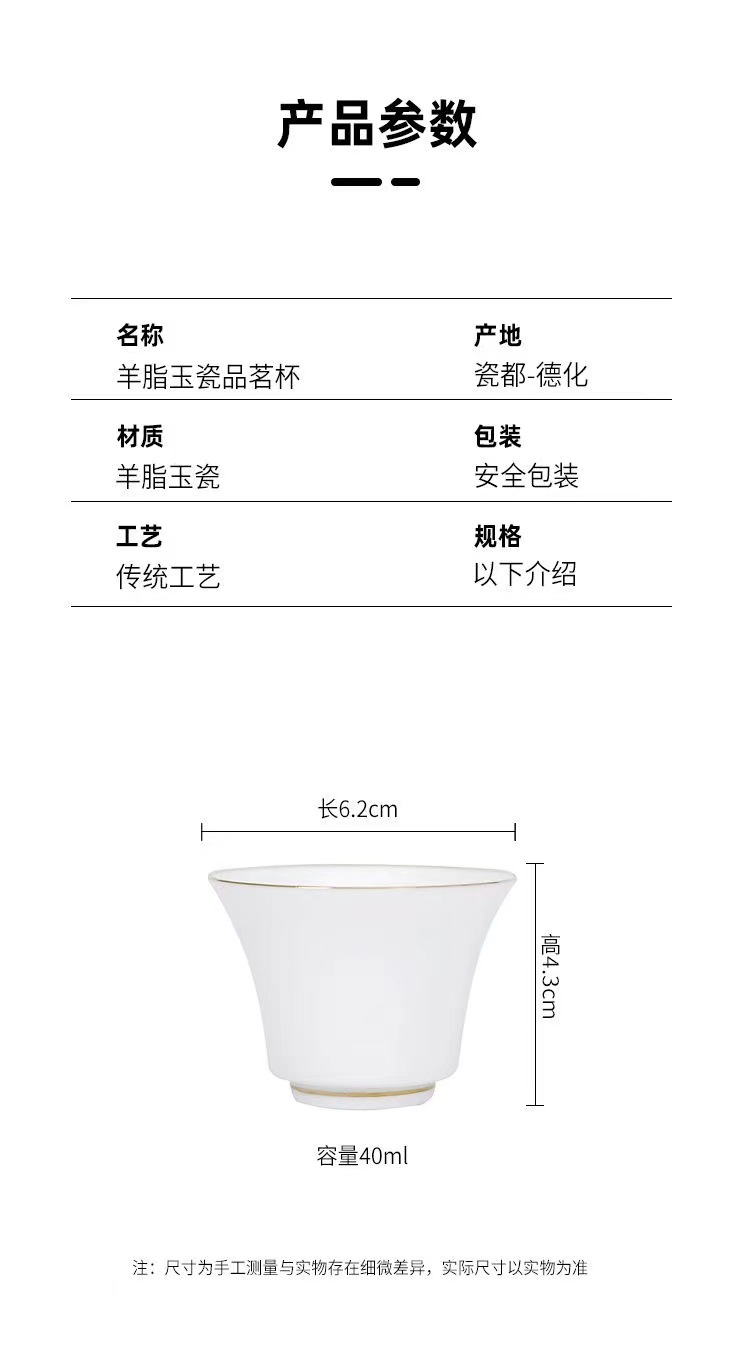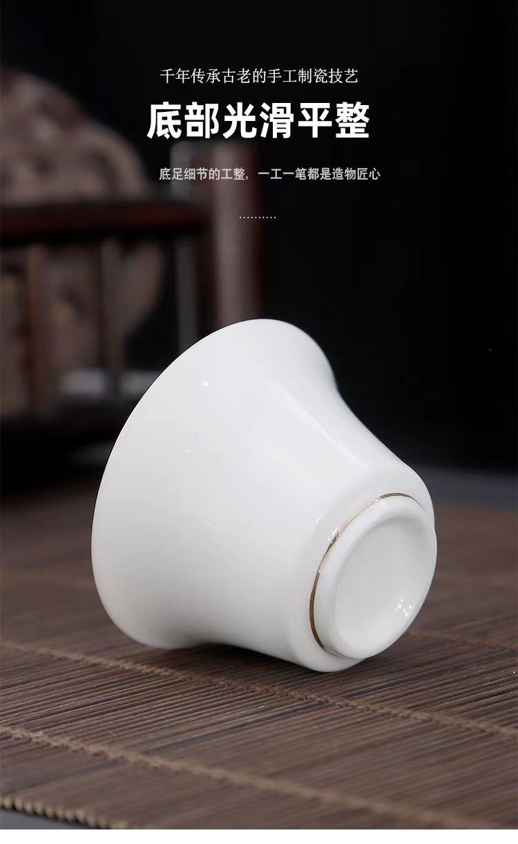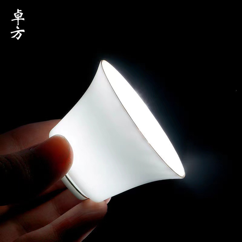Dehua 양 지방 옥 높은 흰색 도자기 쿵푸 차 컵 순수한 흰색 차 컵 세라믹 마스터 컵 가정용 차 세트 하이 엔드 싱글 컵