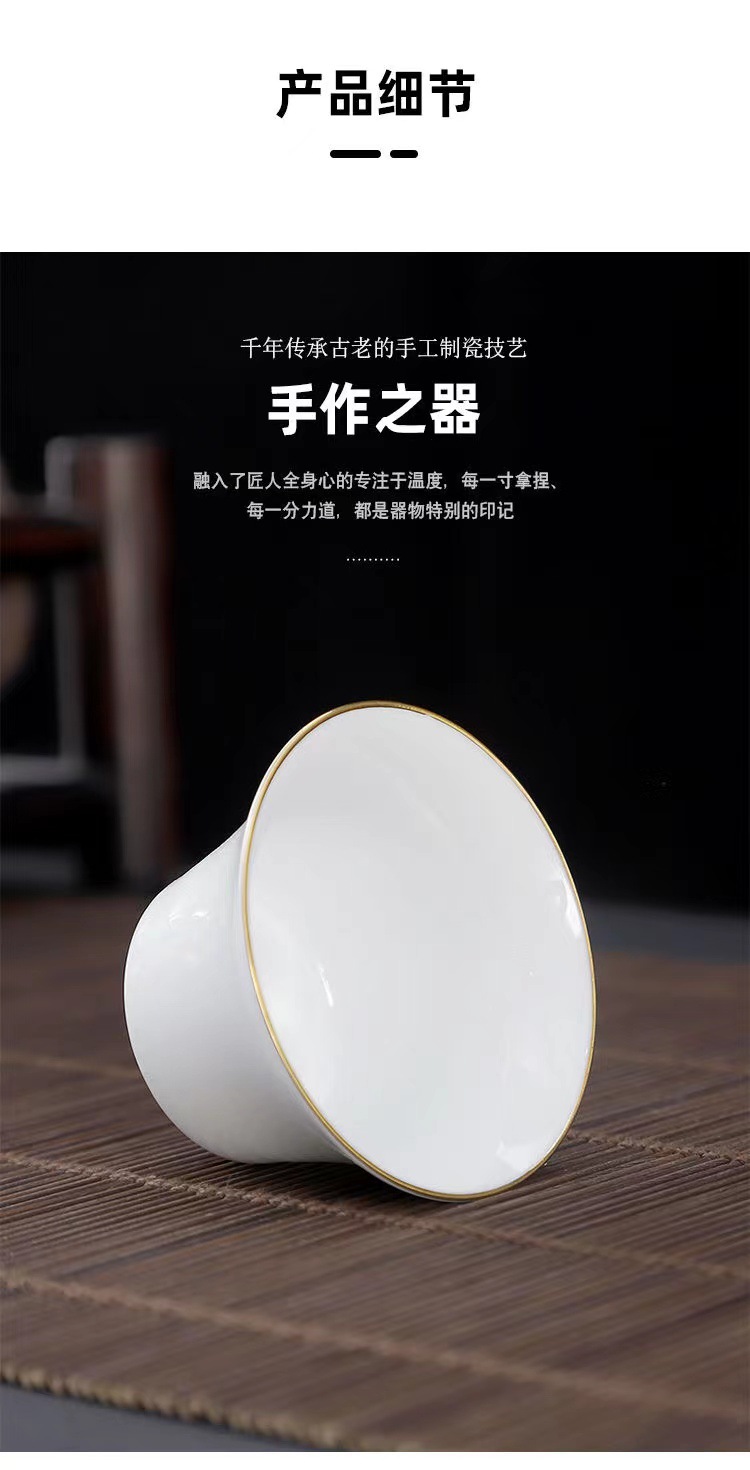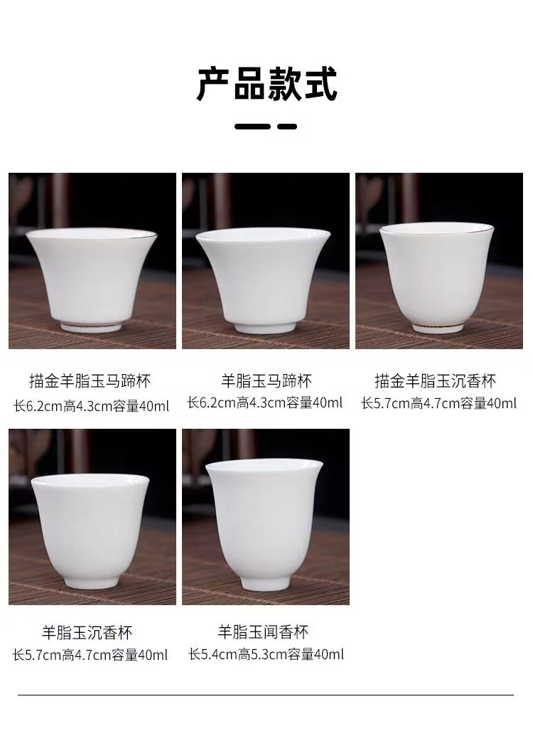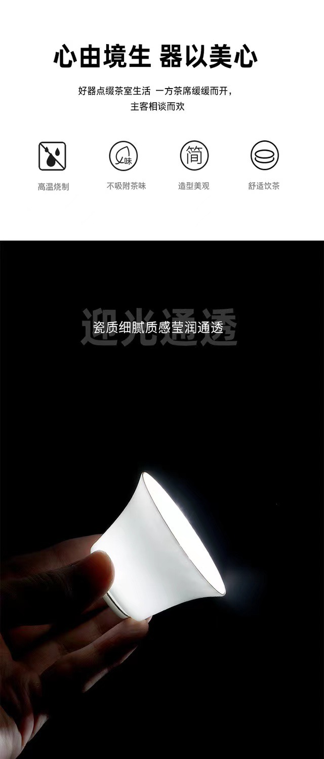 Dehua 양 지방 옥 높은 흰색 도자기 쿵푸 차 컵 순수한 흰색 차 컵 세라믹 마스터 컵 가정용 차 세트 하이 엔드 싱글 컵