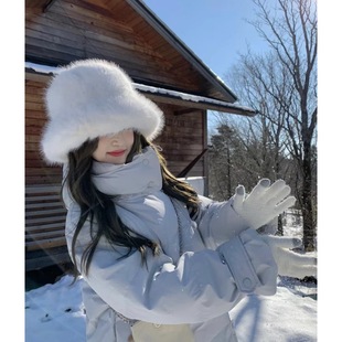 【很大一顶毛绒帽】仿貂毛粉色渔夫帽冬天雪地拍照氛围感白色盆帽