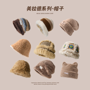 美拉德帽子女冬款毛线帽针织堆堆冷帽毛绒渔夫帽百搭保暖可爱防寒