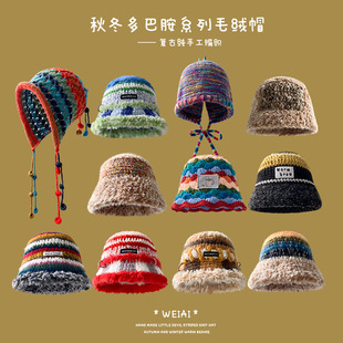 秋冬季新款多巴胺帽子女复古氛围感针织毛线帽百搭保暖毛绒渔夫帽