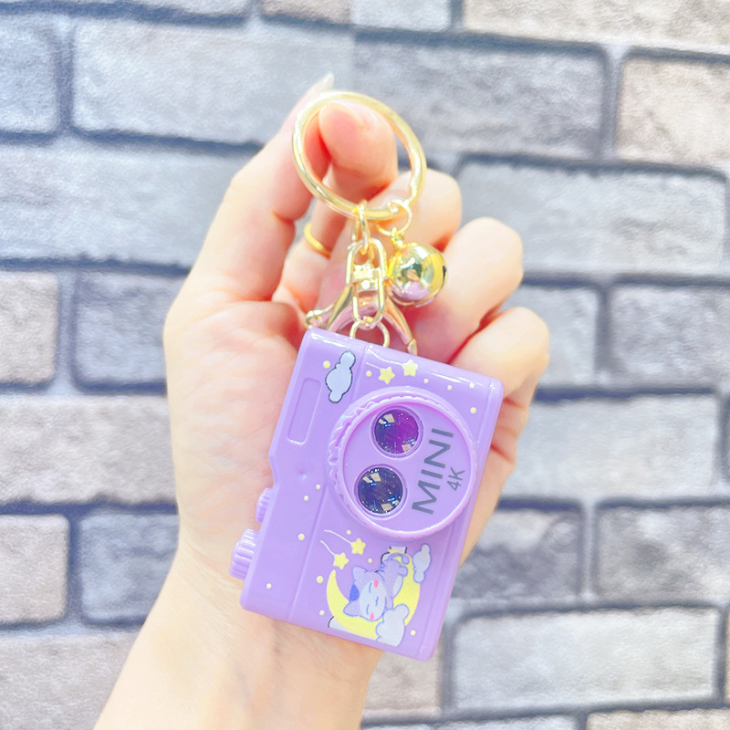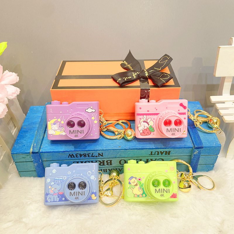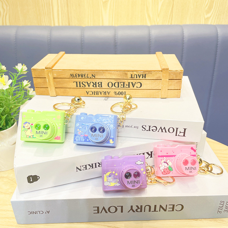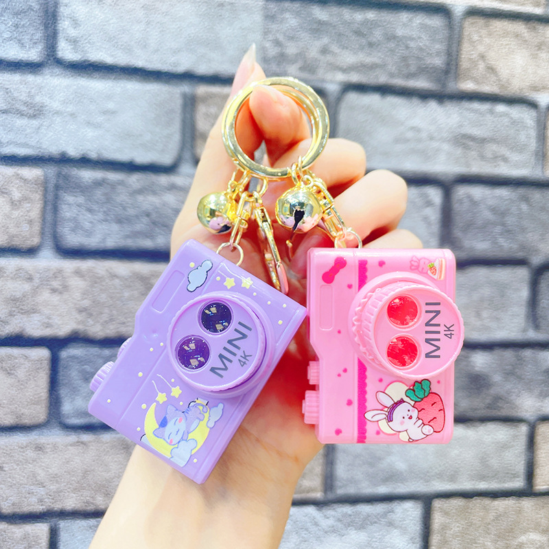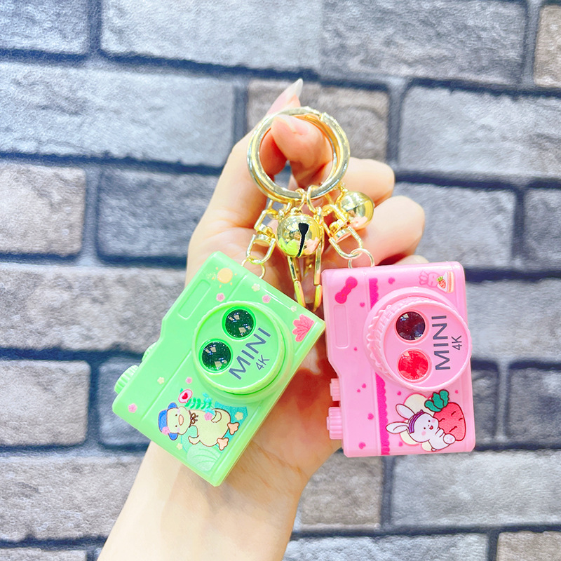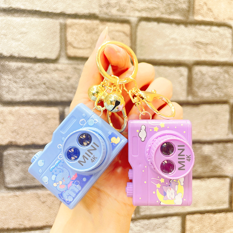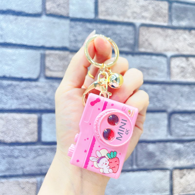 도매 동물 카메라 빛나는 여성 보석 책가방 선물 자동차 펜던트 키 체인 작은 장식품 만화 키 체인스토어 가기