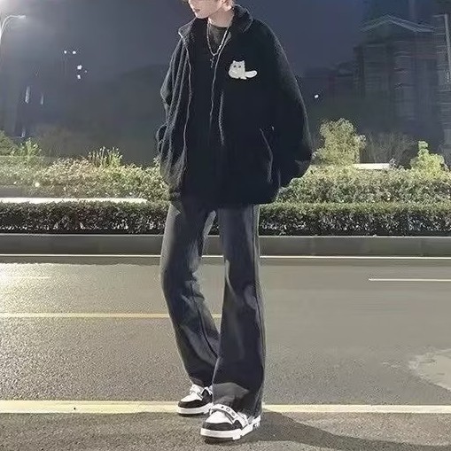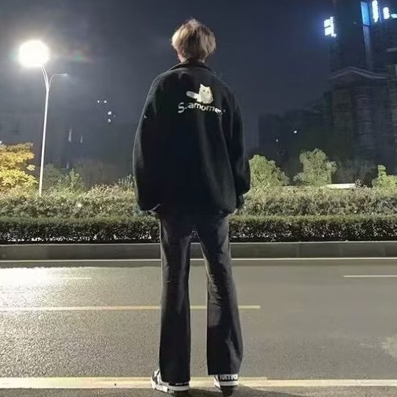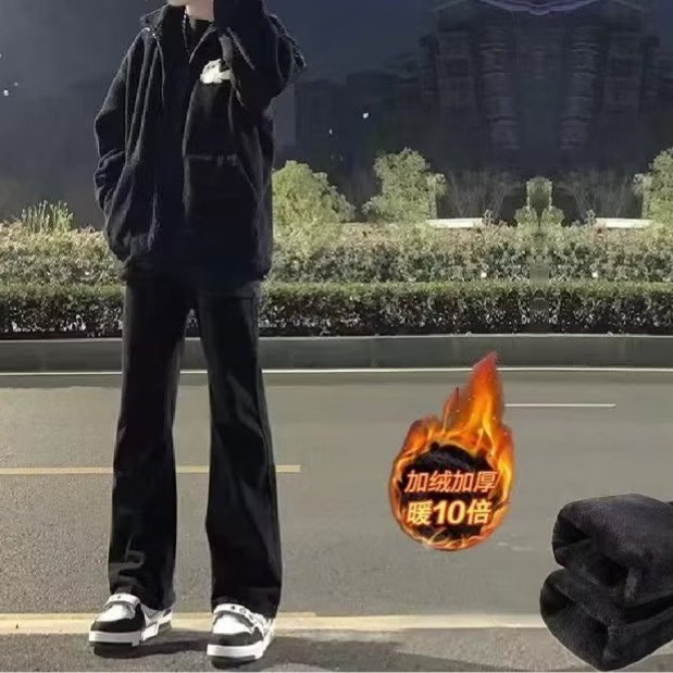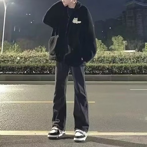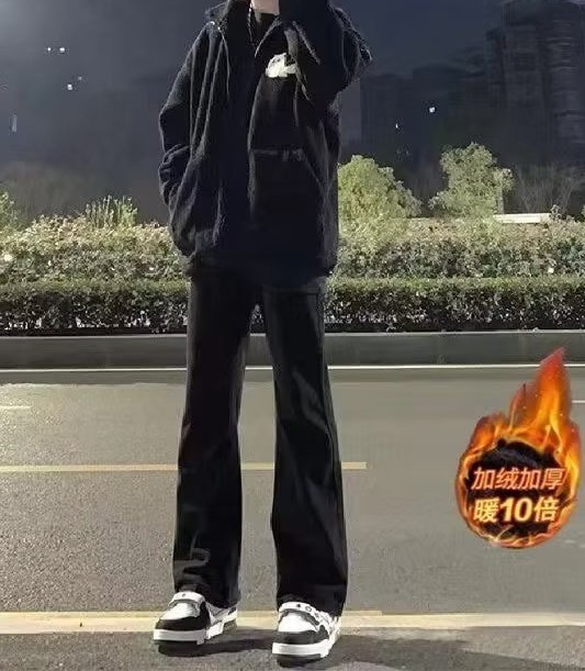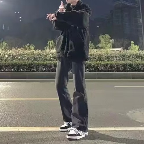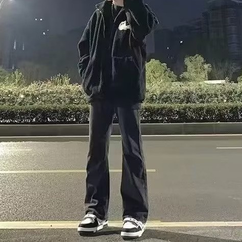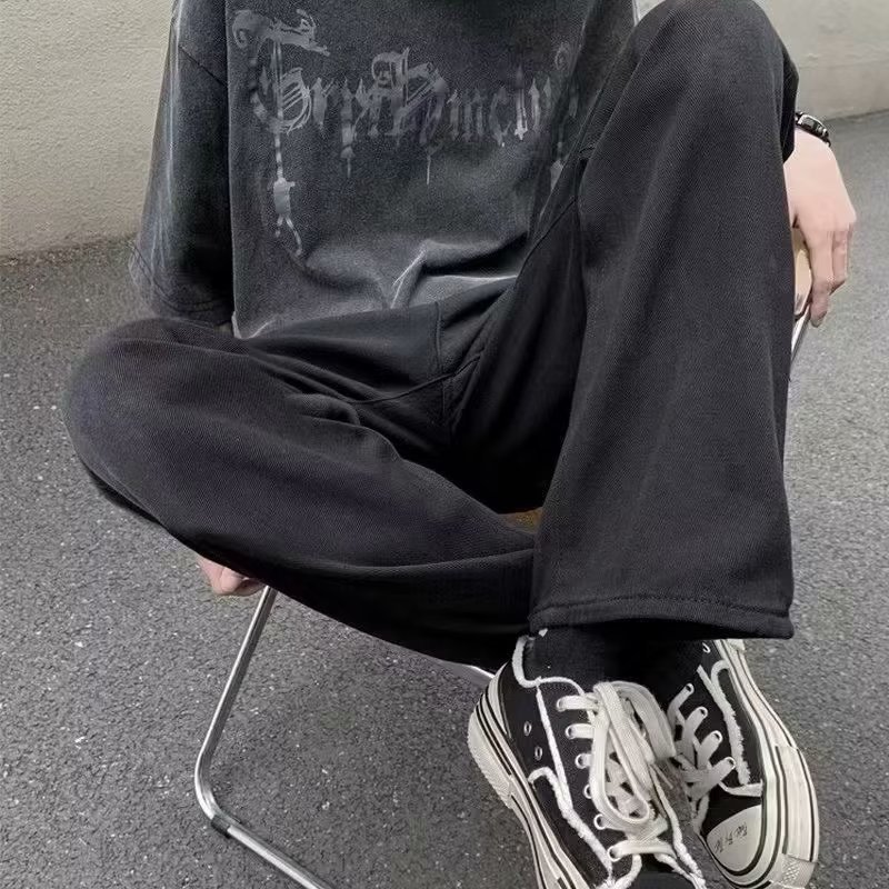 청바지 남성용 슬림 핏 순수한 검은 가을 분위기 미국 스트리트 팬츠 스트레치 힙합 스트레이트 팬츠스토어 가기