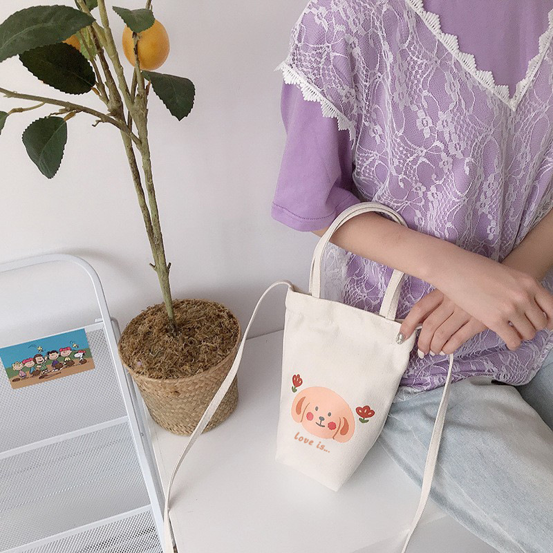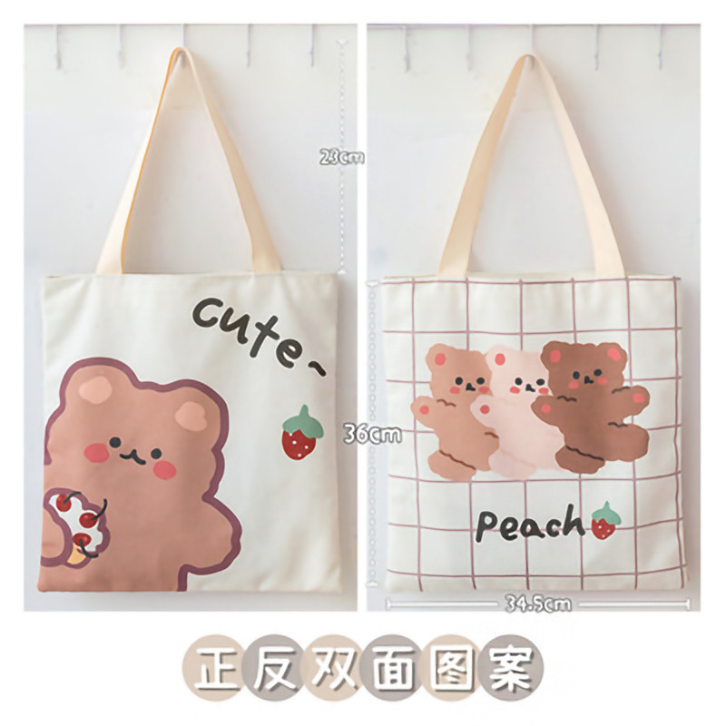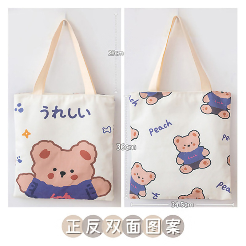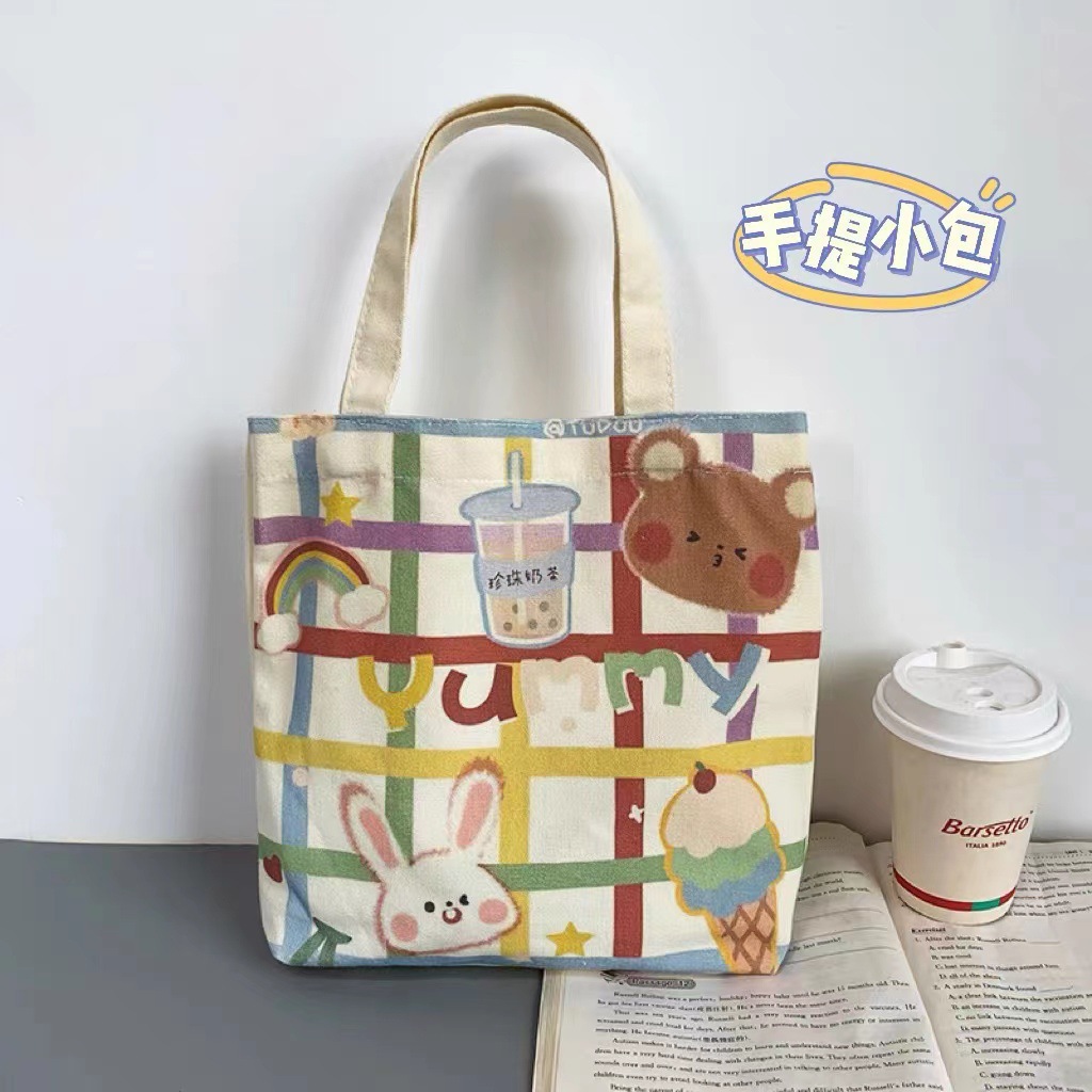 재고 만화 캔버스 가방 손으로 들고 한 어깨 학생 튜토리얼 예술적 올 매치 포시즌 휴대용 천 가방 통근 가방 여성스토어 가기