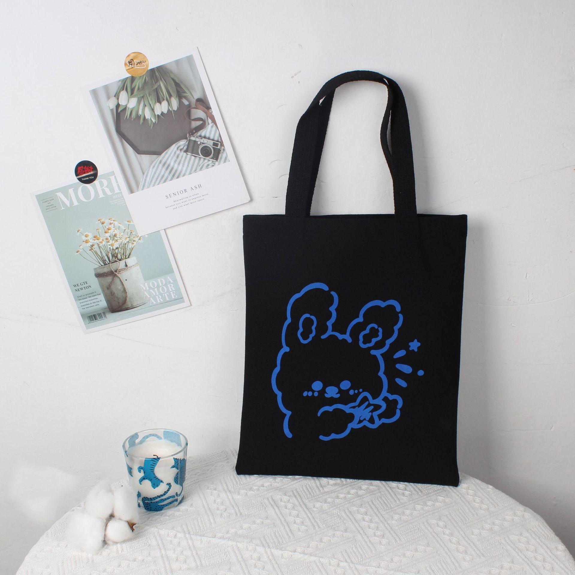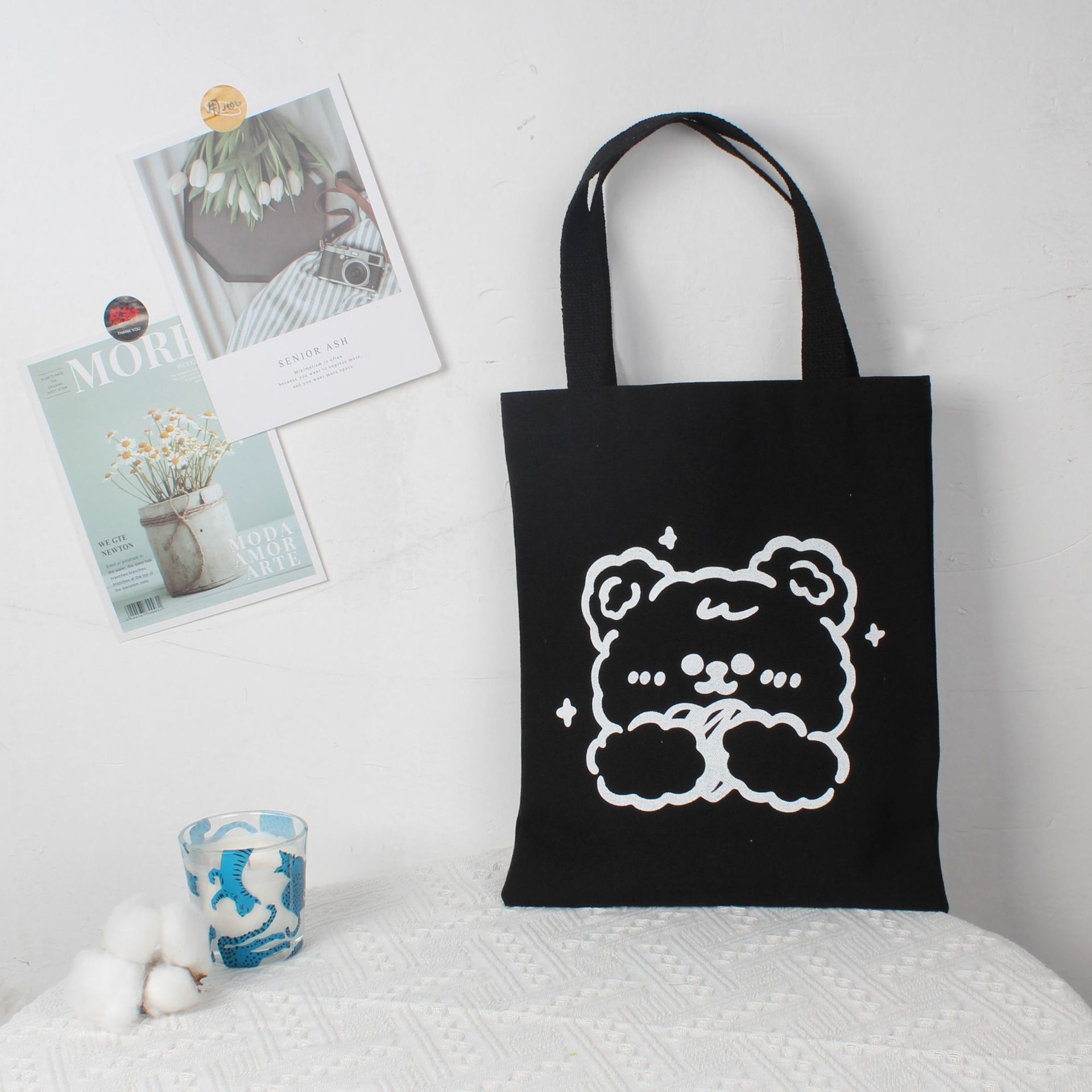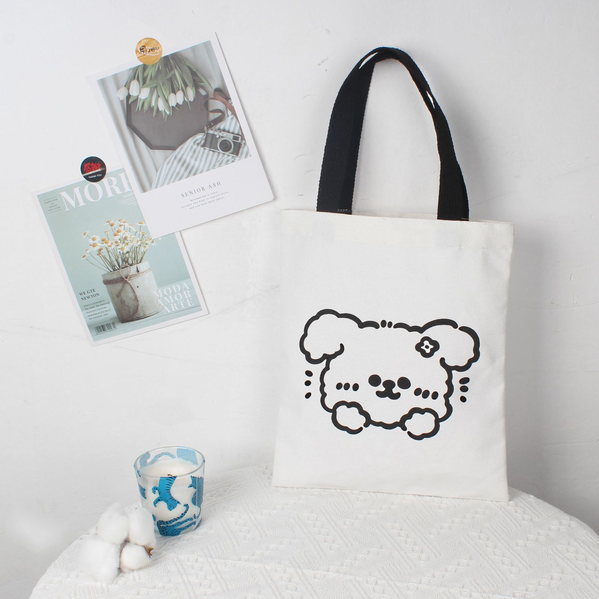 재고 만화 캔버스 가방 손으로 들고 한 어깨 학생 튜토리얼 예술적 올 매치 포시즌 휴대용 천 가방 통근 가방 여성스토어 가기