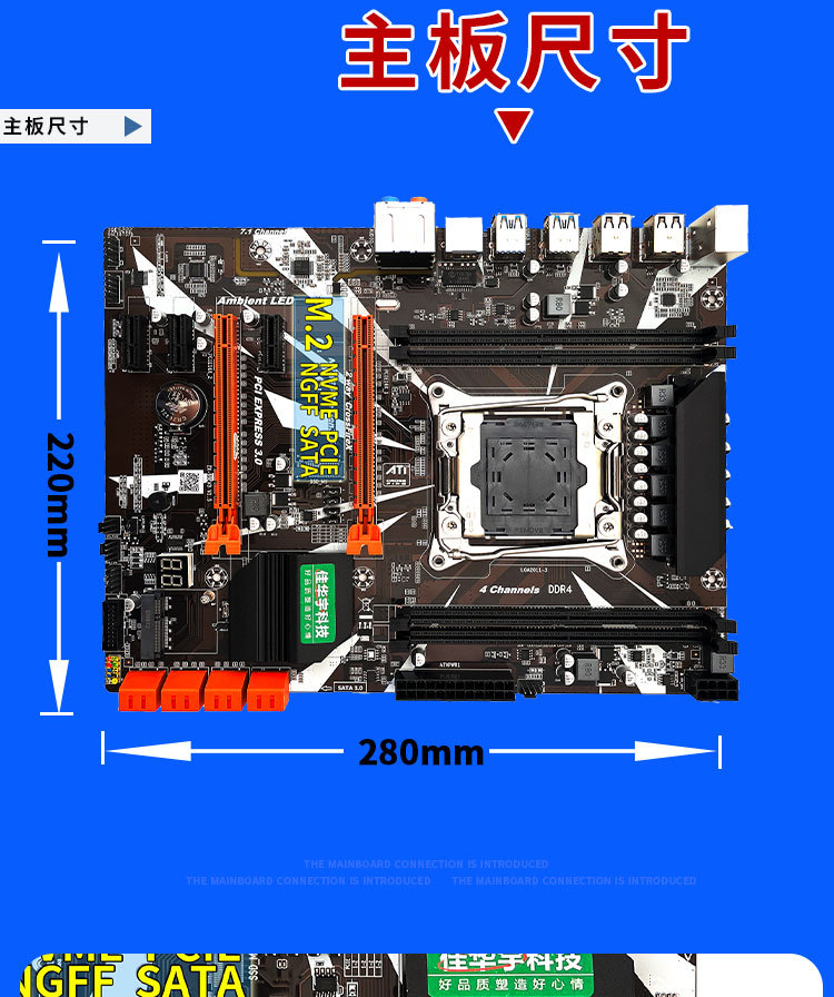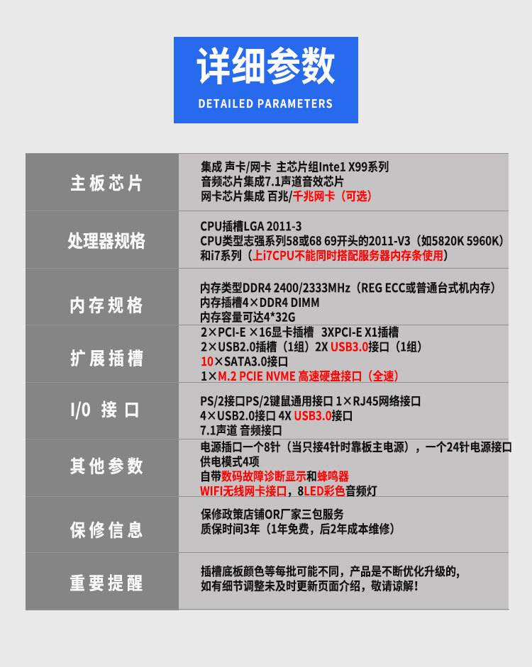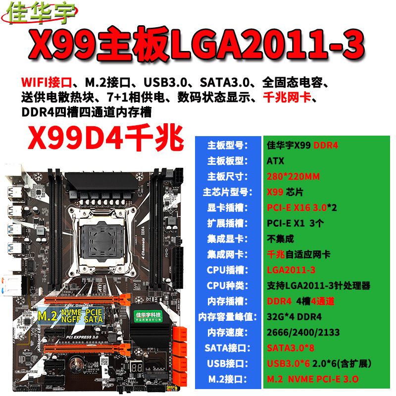 X99D4 대형 보드 데스크탑 컴퓨터 마더 보드 2011-3 V3 V4 핀 CPU 4 채널 DDR4 메모리 M.2 WiFi