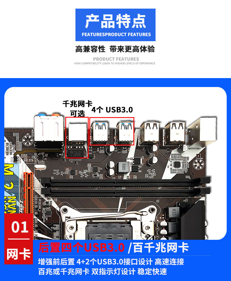 X99D4 대형 보드 데스크탑 컴퓨터 마더 보드 2011-3 V3 V4 핀 CPU 4 채널 DDR4 메모리 M.2 WiFi스토어 가기