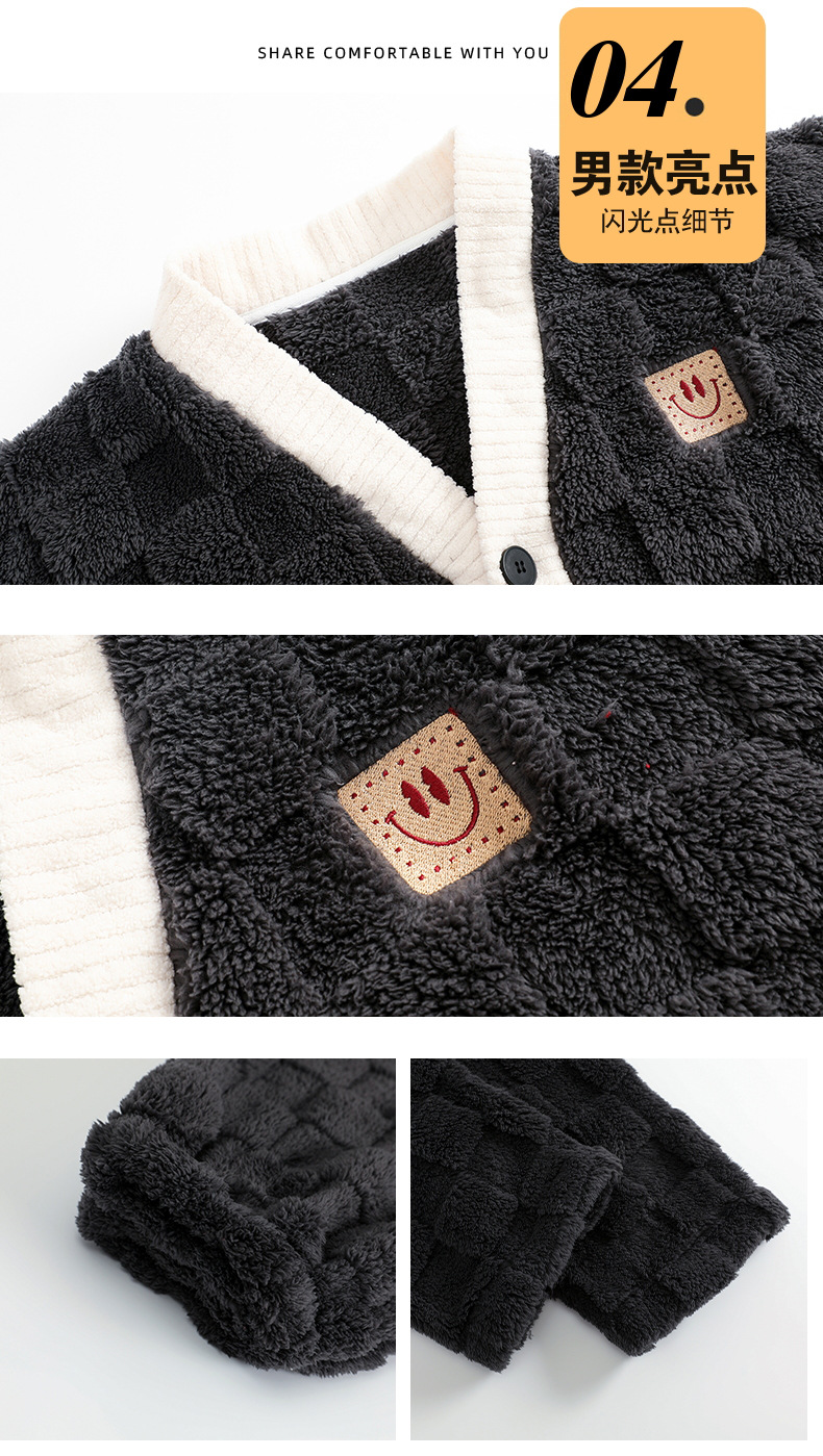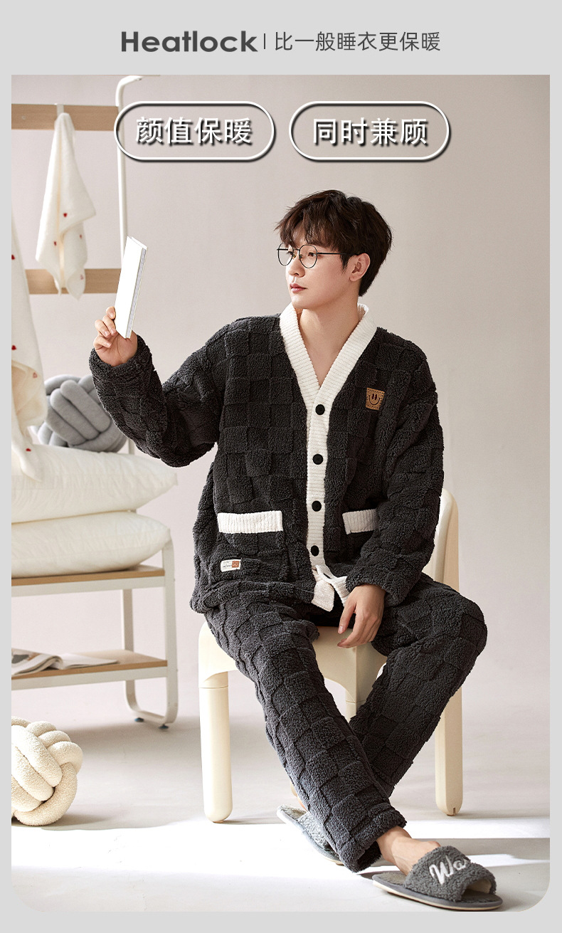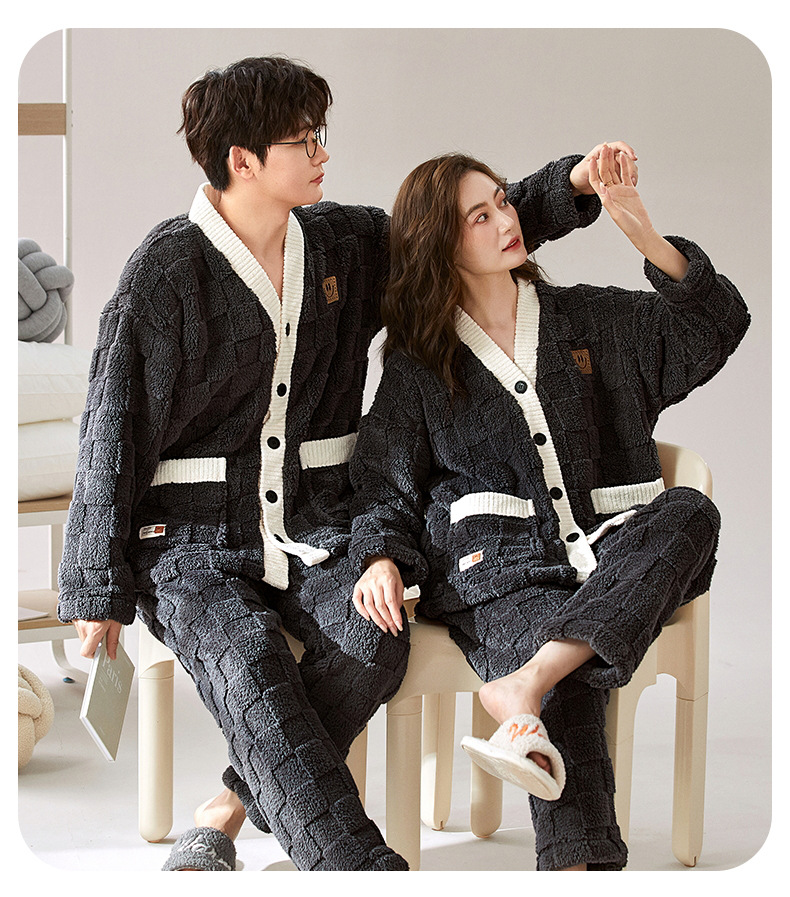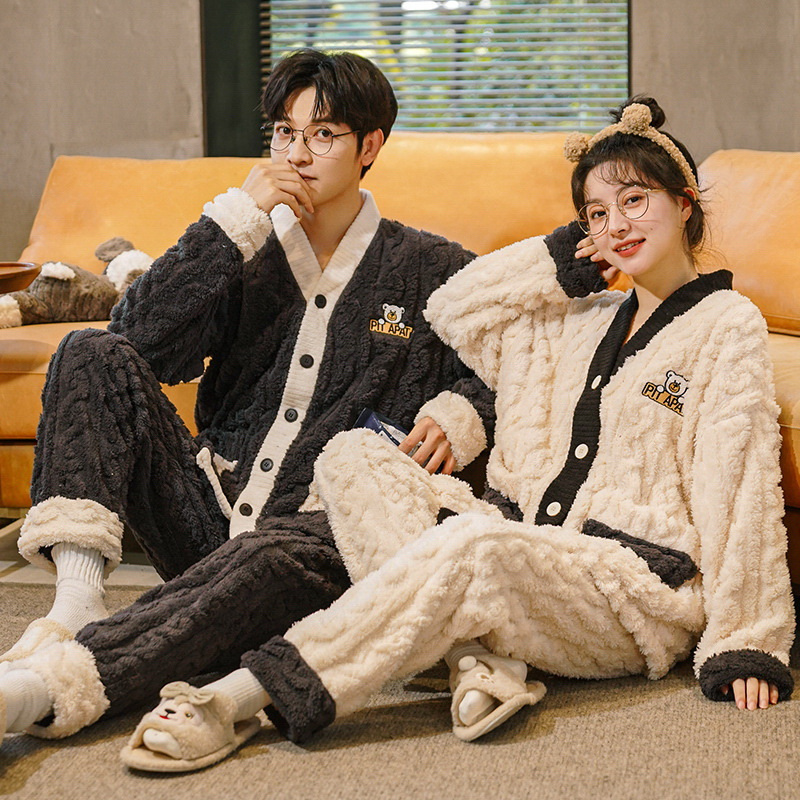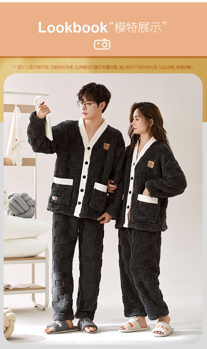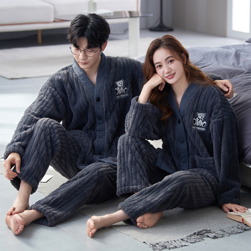 커플 잠옷 여성의 가을과 겨울 산호 양털 홈웨어 기모 두꺼운 겨울 남성 플란넬은 세트 밖에서 착용 할 수 있습니다.스토어 가기
