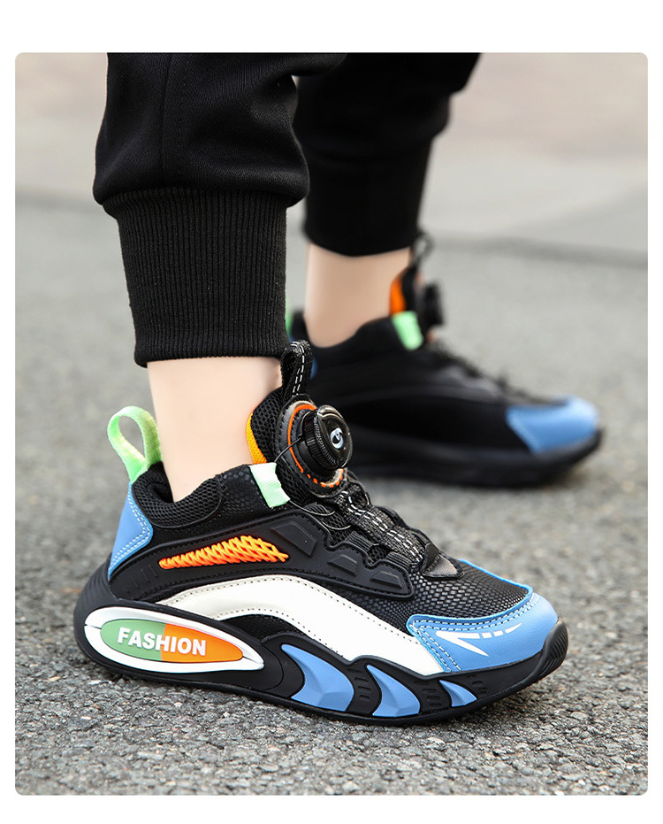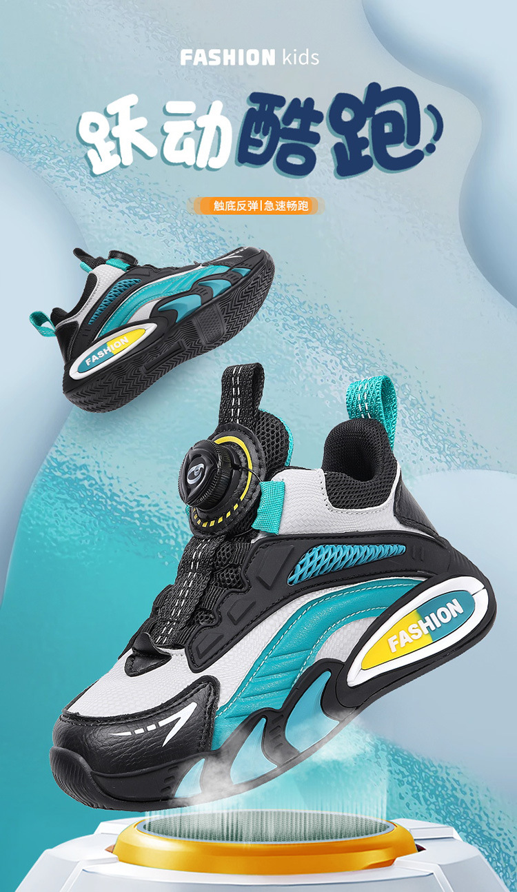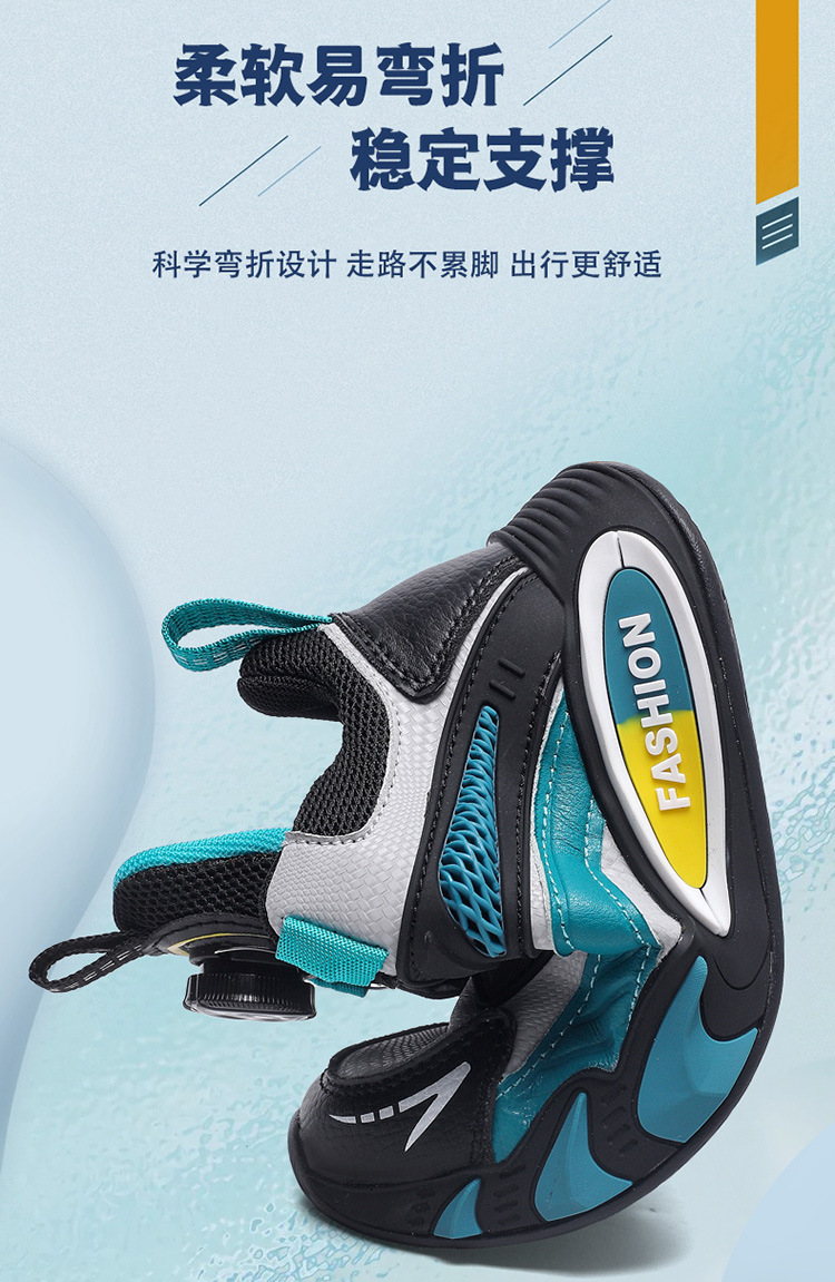 남아 운동화 가을 가죽 방수 운동화 중대형 어린이 경량 여행화 초등학생 회전 버튼 아동화