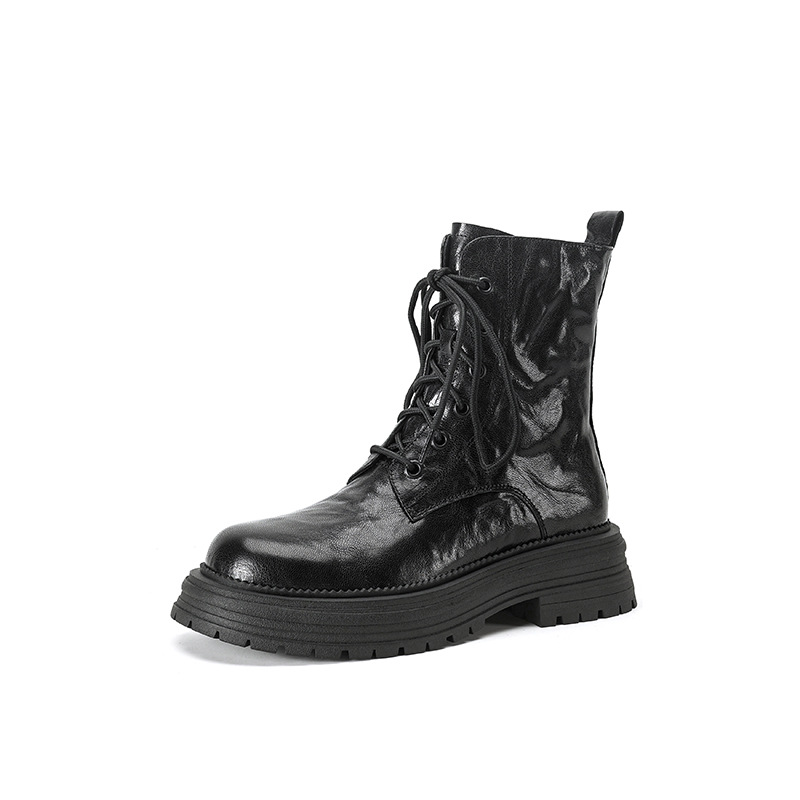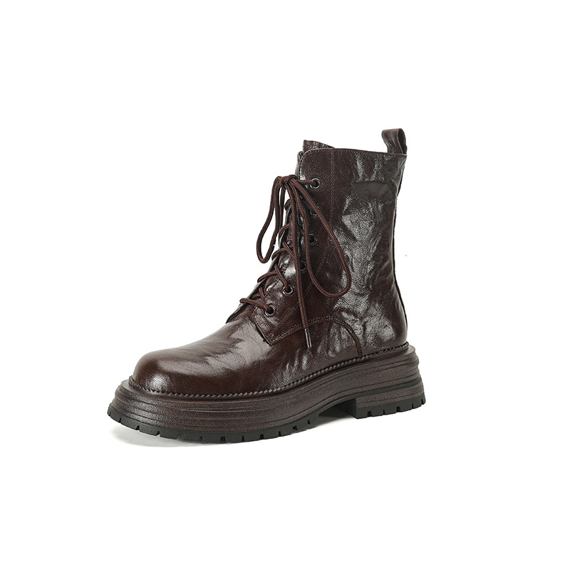 오토바이 소녀 프렌치 레트로 라운드 토 두꺼운 밑창 레이스업 마틴 부츠 2025 겨울 양가죽 캐주얼 사이드 지퍼 숏부츠스토어 가기