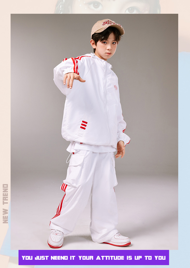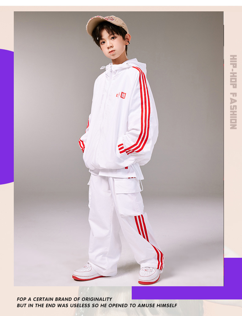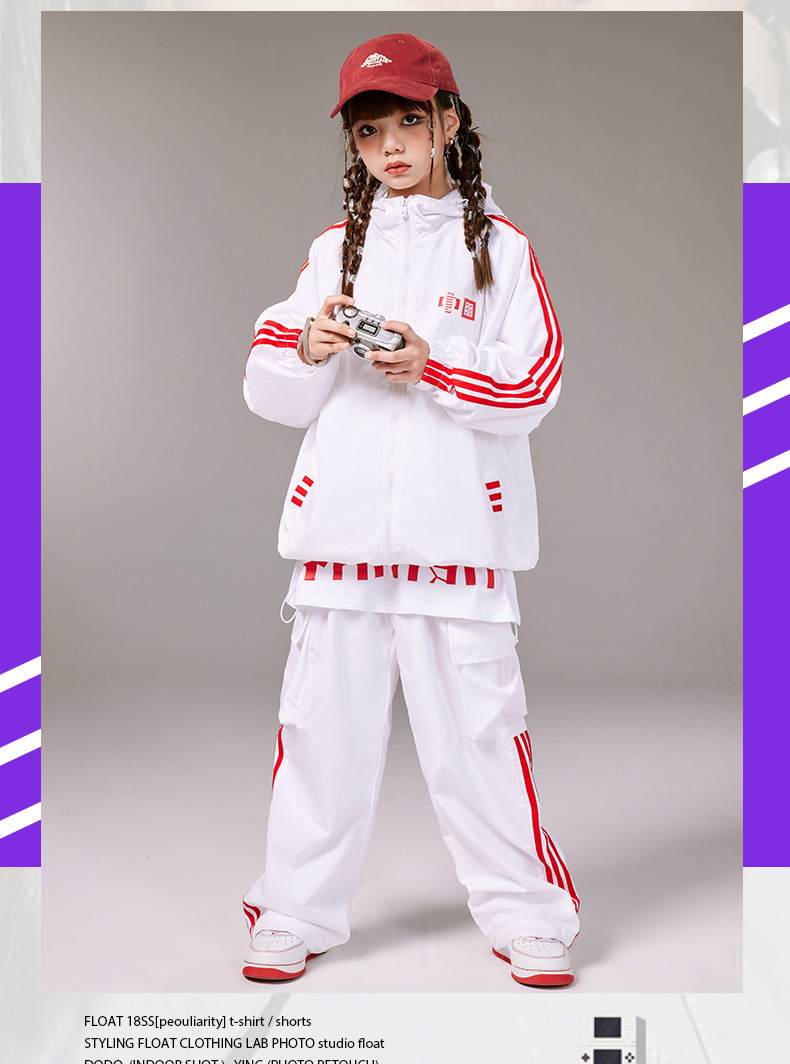 • WT02 흰색 재킷 F15 흰색 줄무늬 바지 빨간 야구 모자