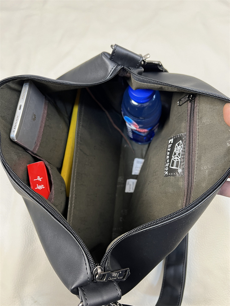 threebox时尚大容量斜挎包 潮流男士机车背包 商务简约单肩包大包