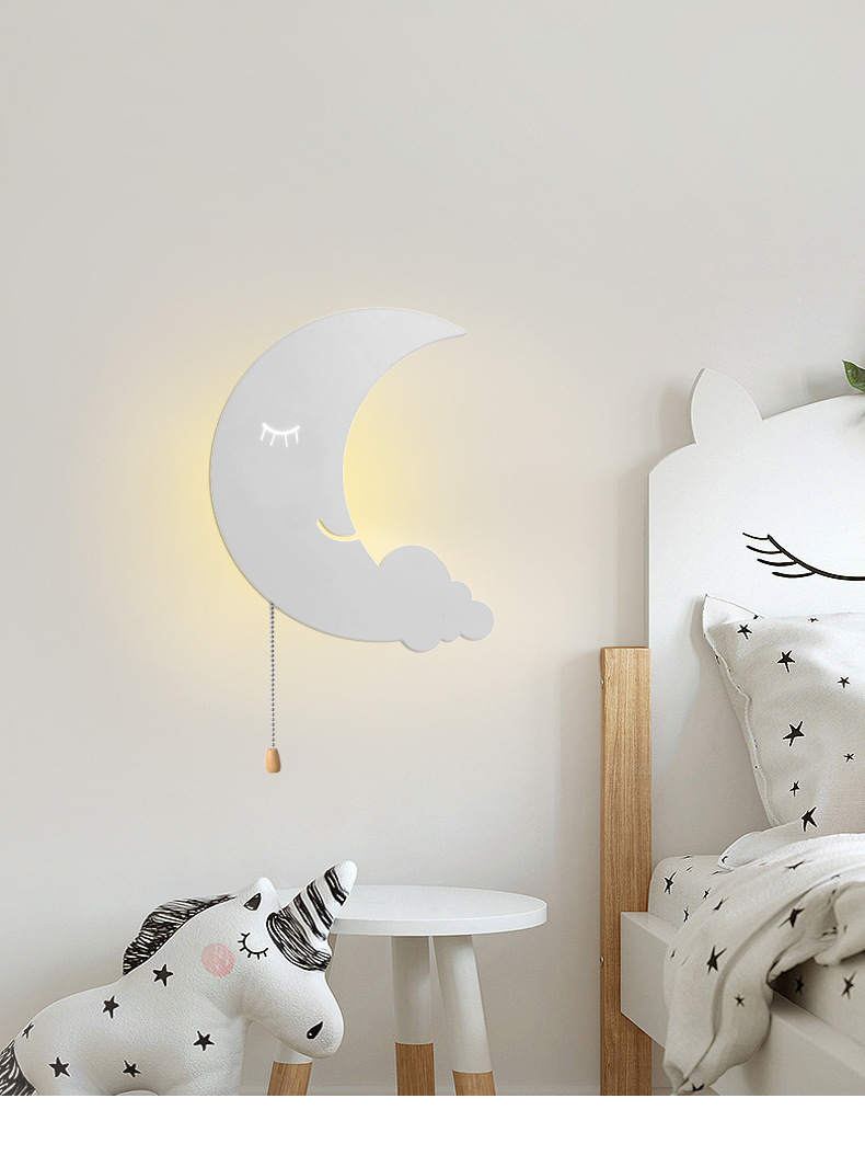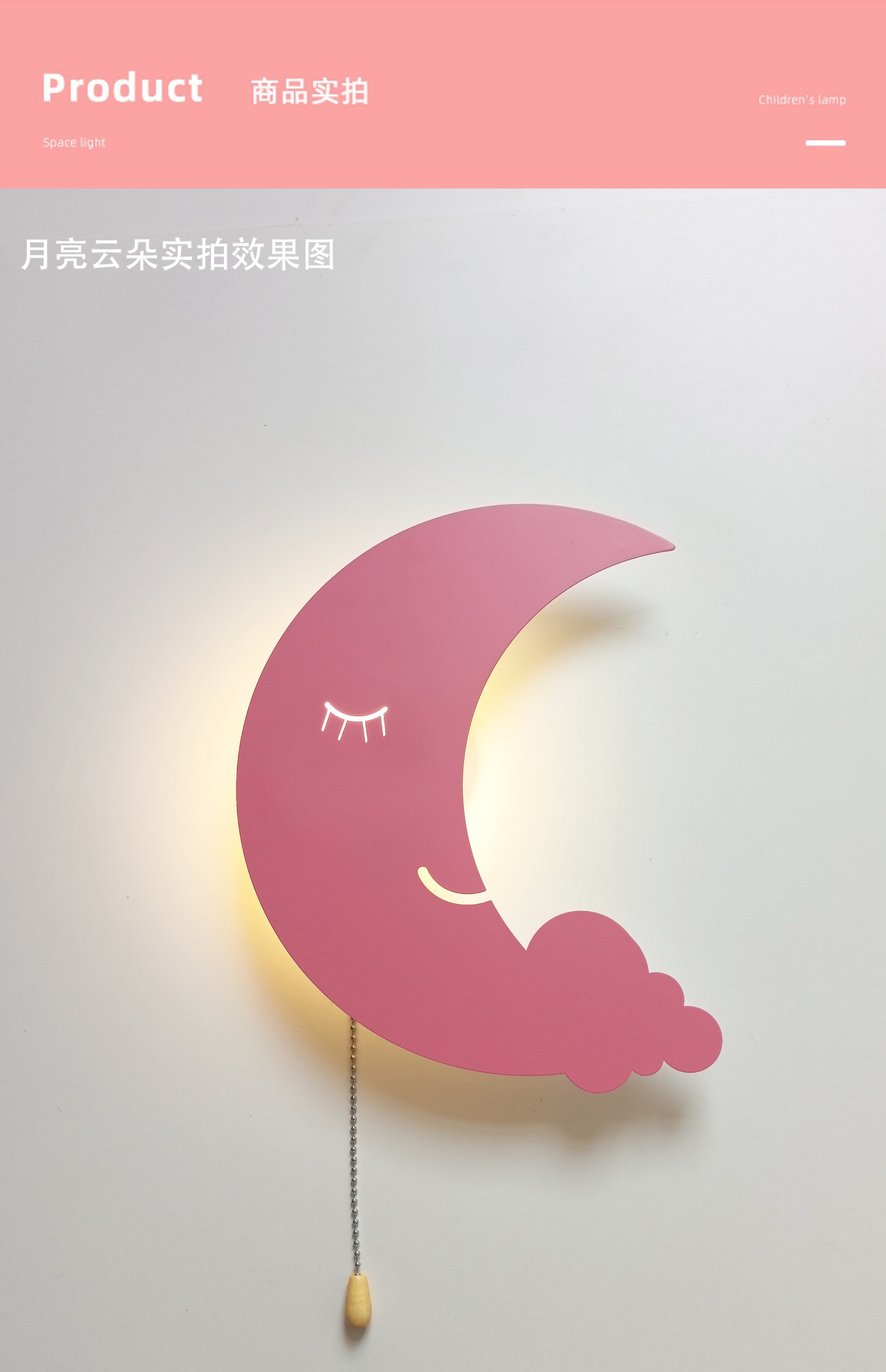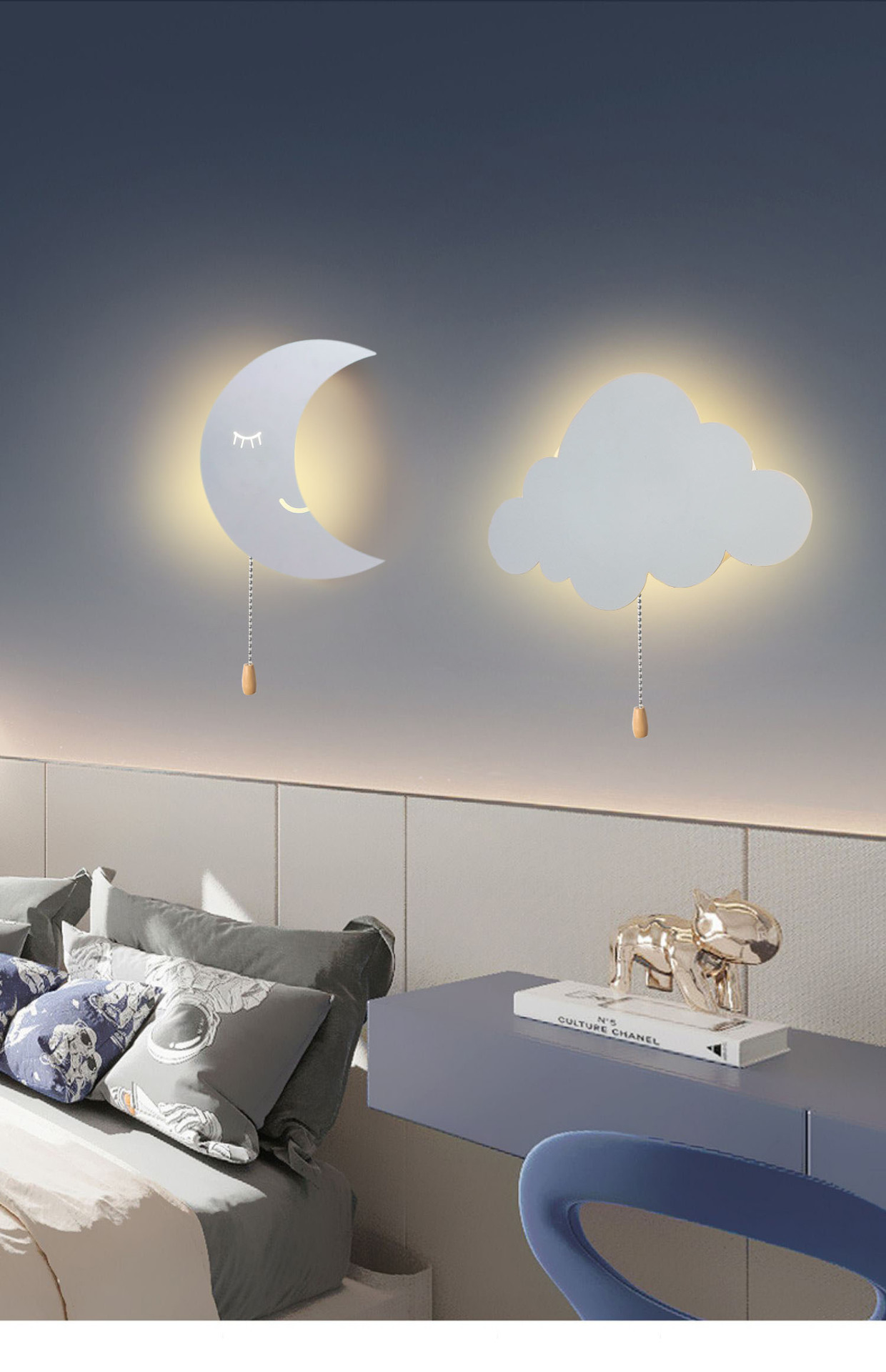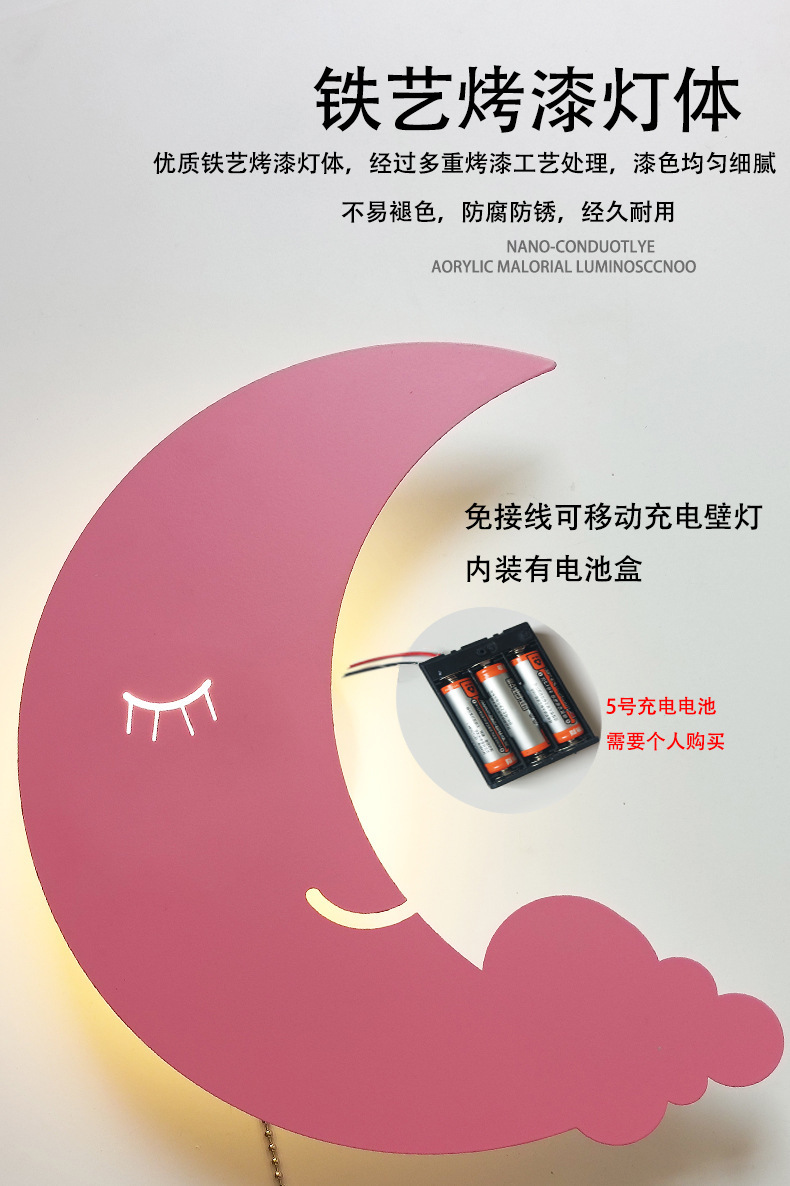 아마존 모바일 충전 어린이 방 침대 옆 램프 배선 무료 배선없는 달 구름 벽 램프 만화 장식 램프