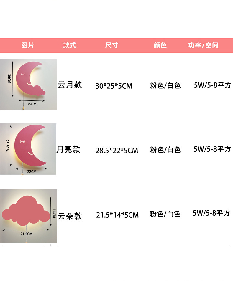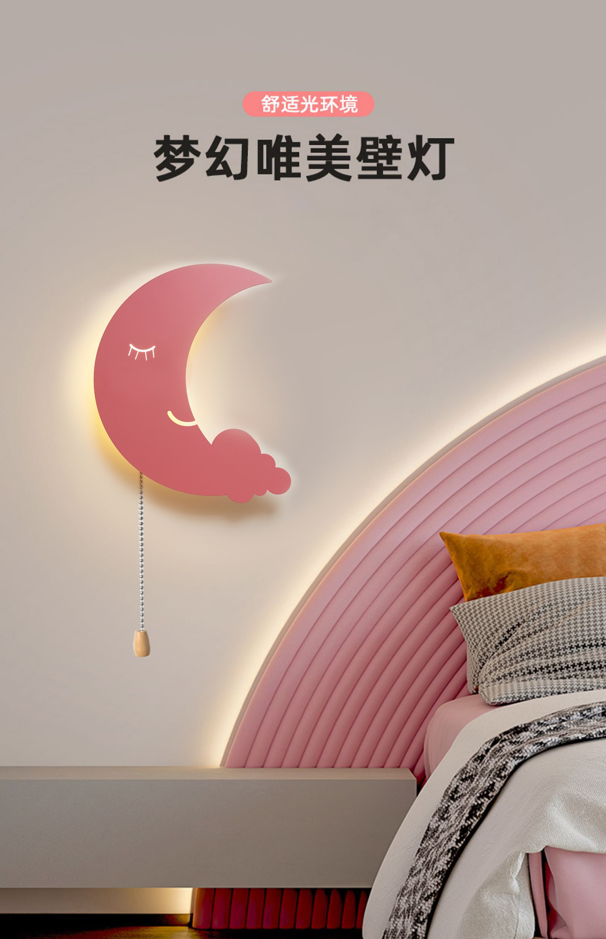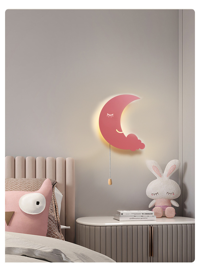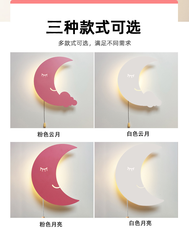 아마존 모바일 충전 어린이 방 침대 옆 램프 배선 무료 배선없는 달 구름 벽 램프 만화 장식 램프