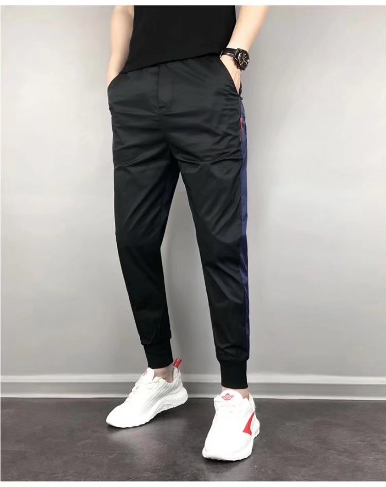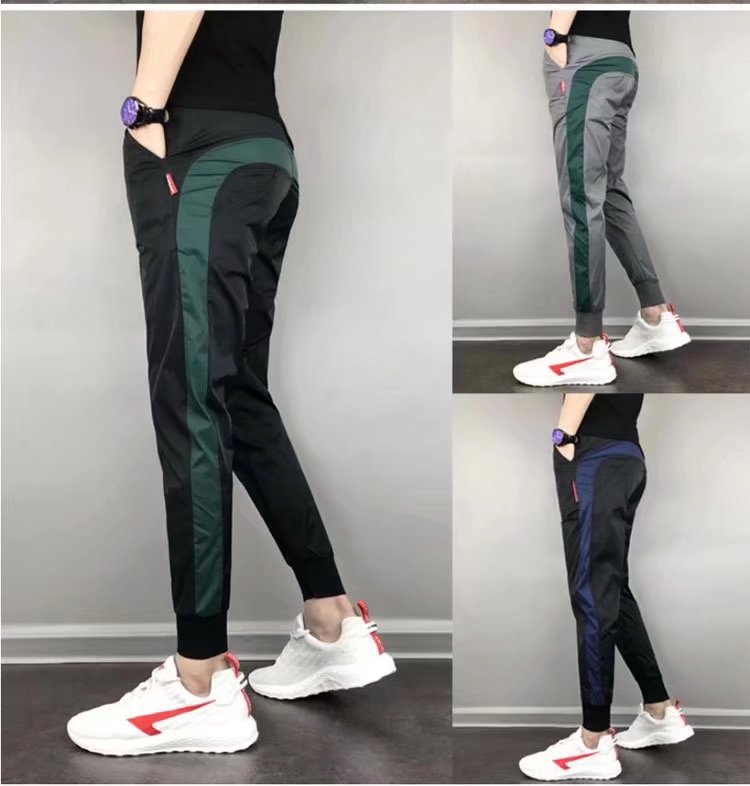가을과 겨울 남성 패션 브랜드 캐주얼 스포츠 스웨트 팬츠 인터넷 유명인 다목적 컬러 매칭 슬림 핏 연필 바지 정신 남자 발목 묶음 바지