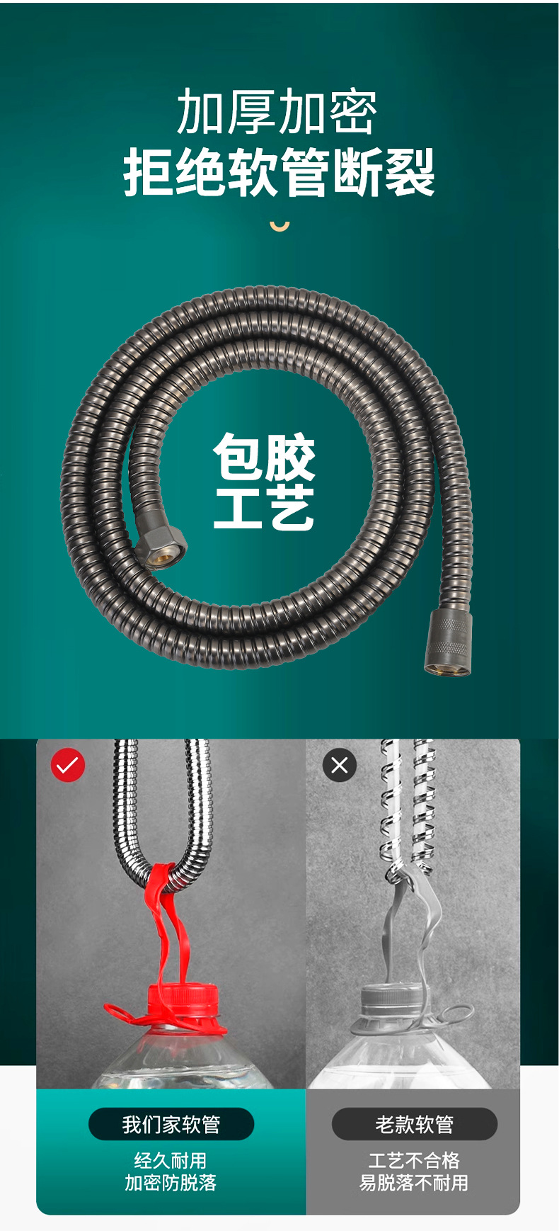플라스틱 코팅 스테인레스 스틸 호스 폭발 방지 샤워 튜브 온수기 액세서리 샤워 총 회색 호스