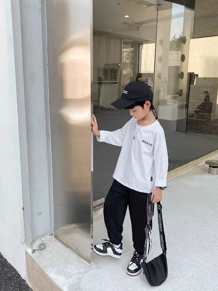 100% 면화 아동용 긴팔 티셔츠 봄과 가을 소년의 트렌디 한 탑 중대형 어린이 겨울 부드러운면 바닥 셔츠스토어 가기