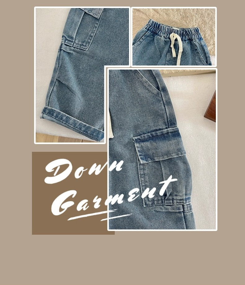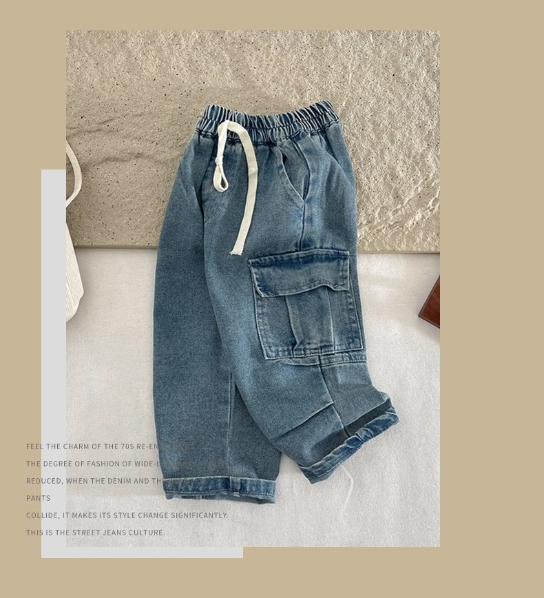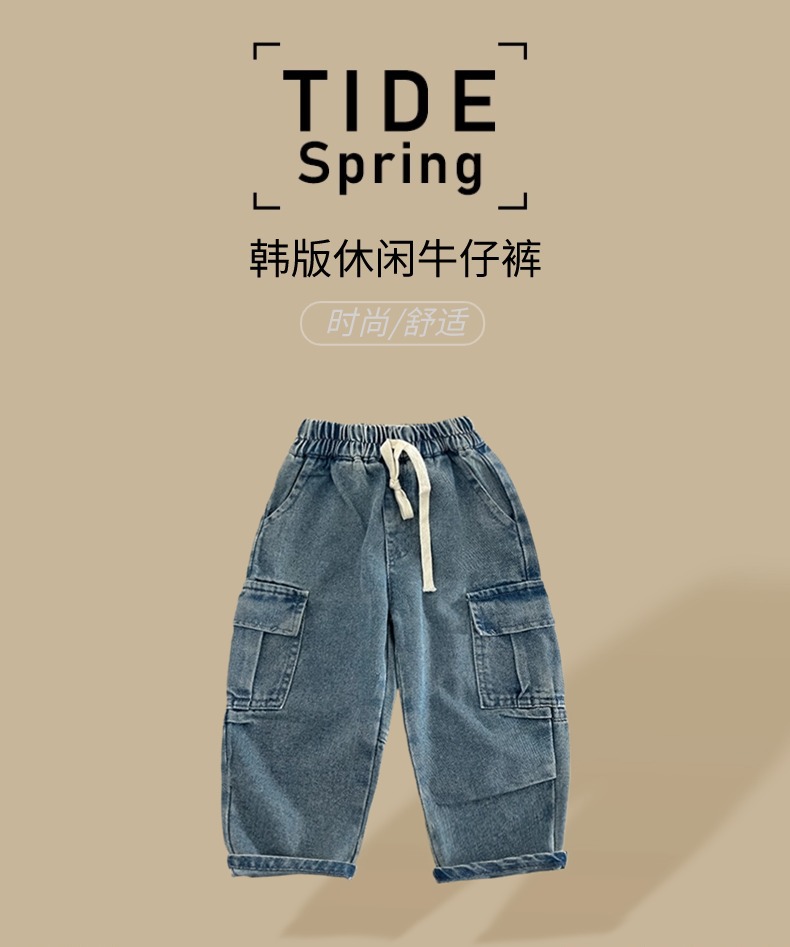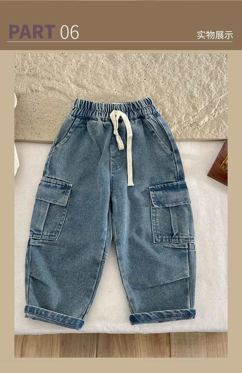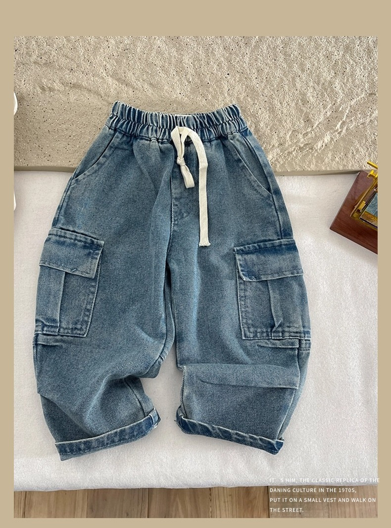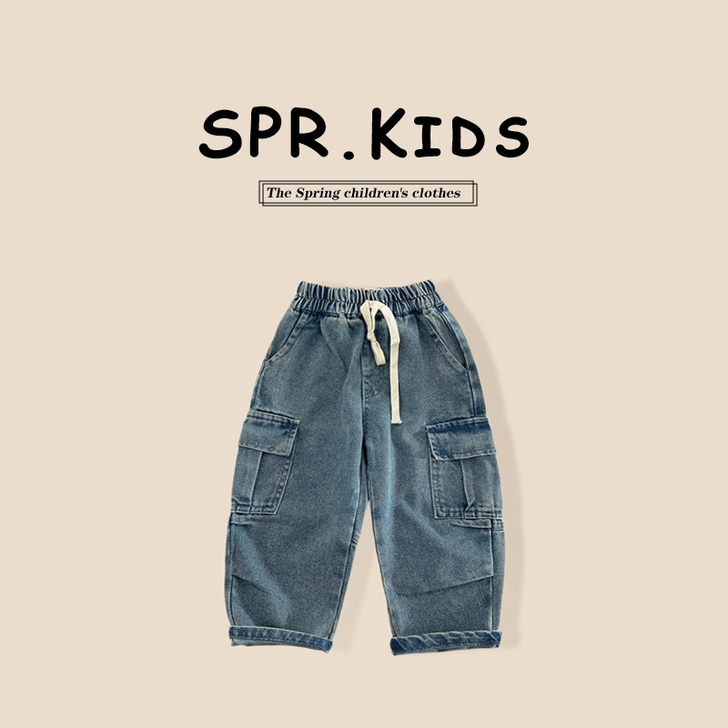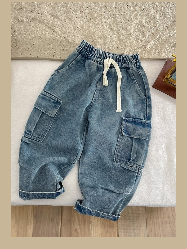 아동 청바지 2025 가을 새로운 아동 의류 멋진 잘 생긴 소년 멀티 포켓 바지 아기 소년 봄 캐주얼 바지스토어 가기