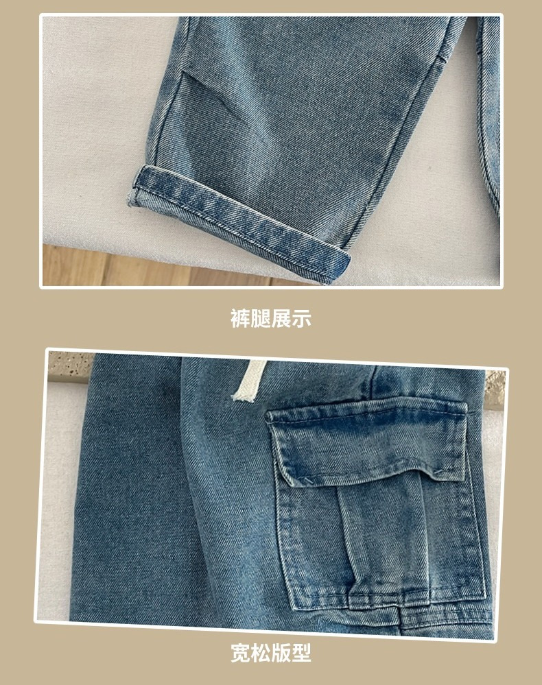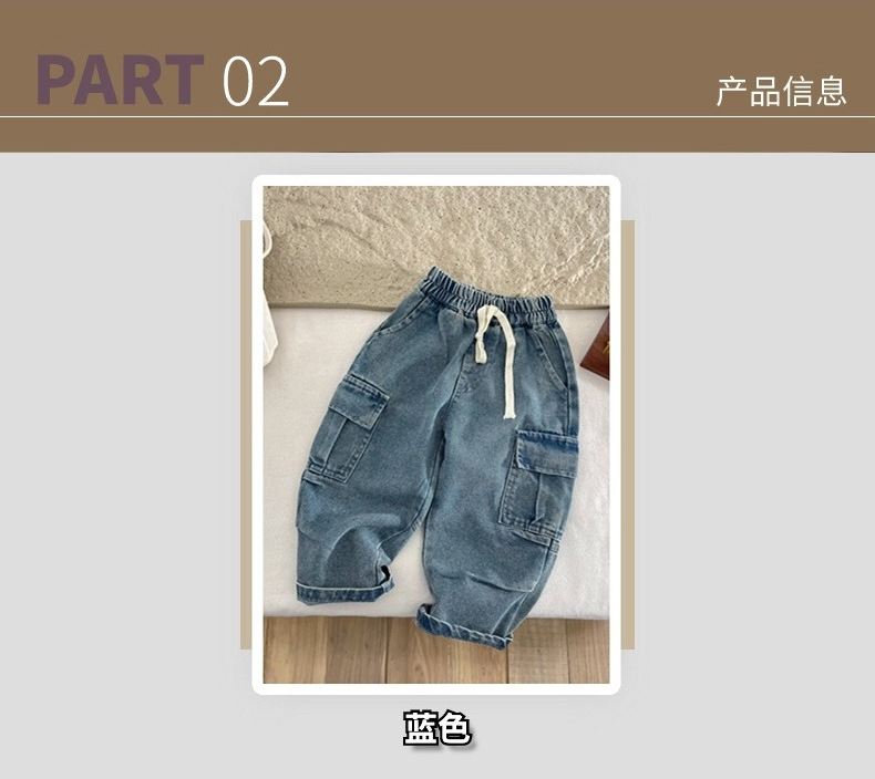 아동 청바지 2025 가을 새로운 아동 의류 멋진 잘 생긴 소년 멀티 포켓 바지 아기 소년 봄 캐주얼 바지