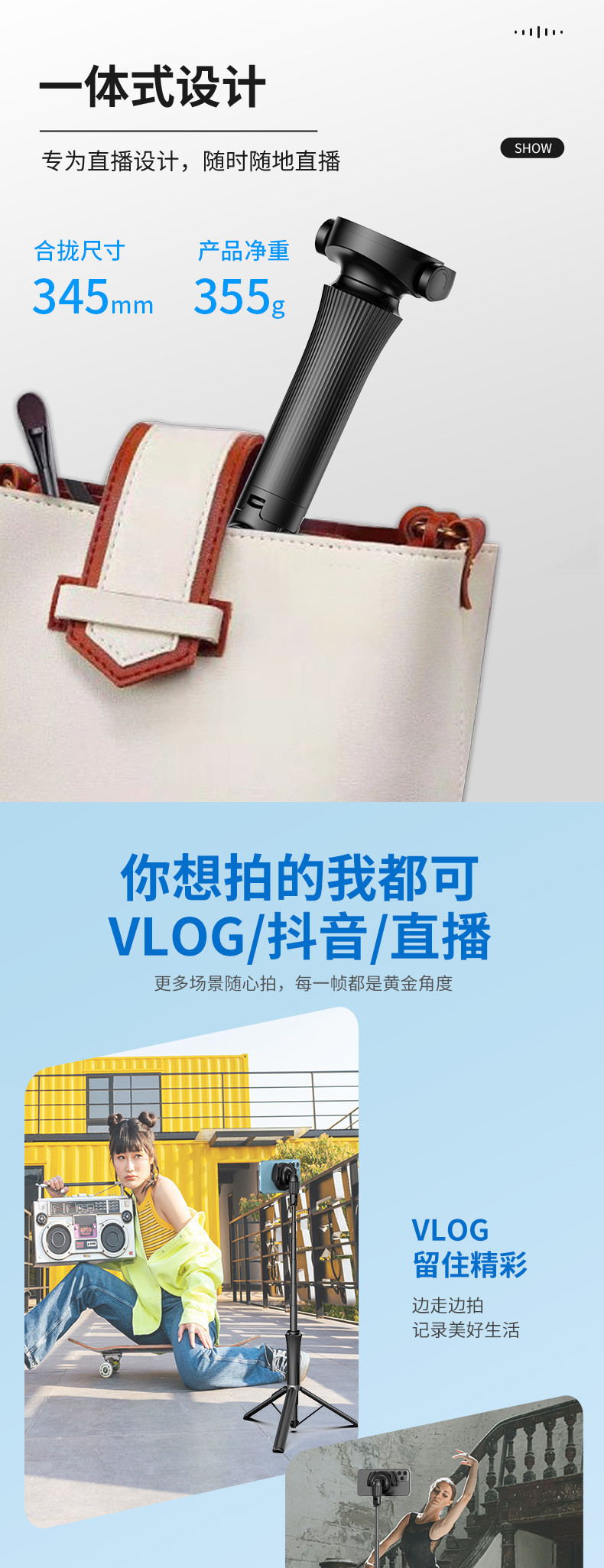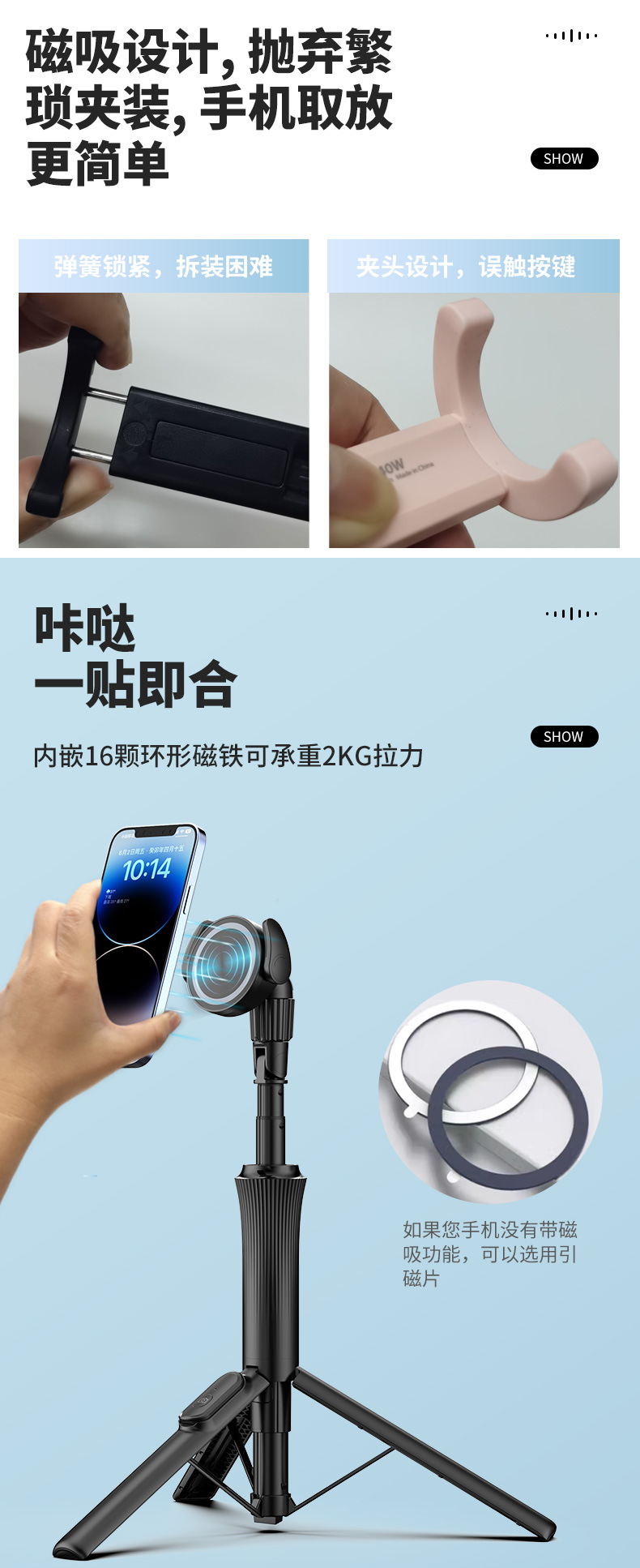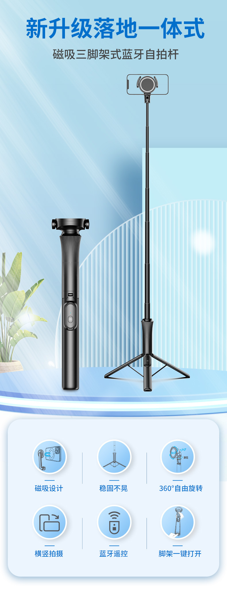 2024 새로운 블루투스 플로어 스탠딩 자기 흡입 셀카 스틱 휴대 전화 홀더 야외 후속 촬영 손떨림 방지 헤드스토어 가기